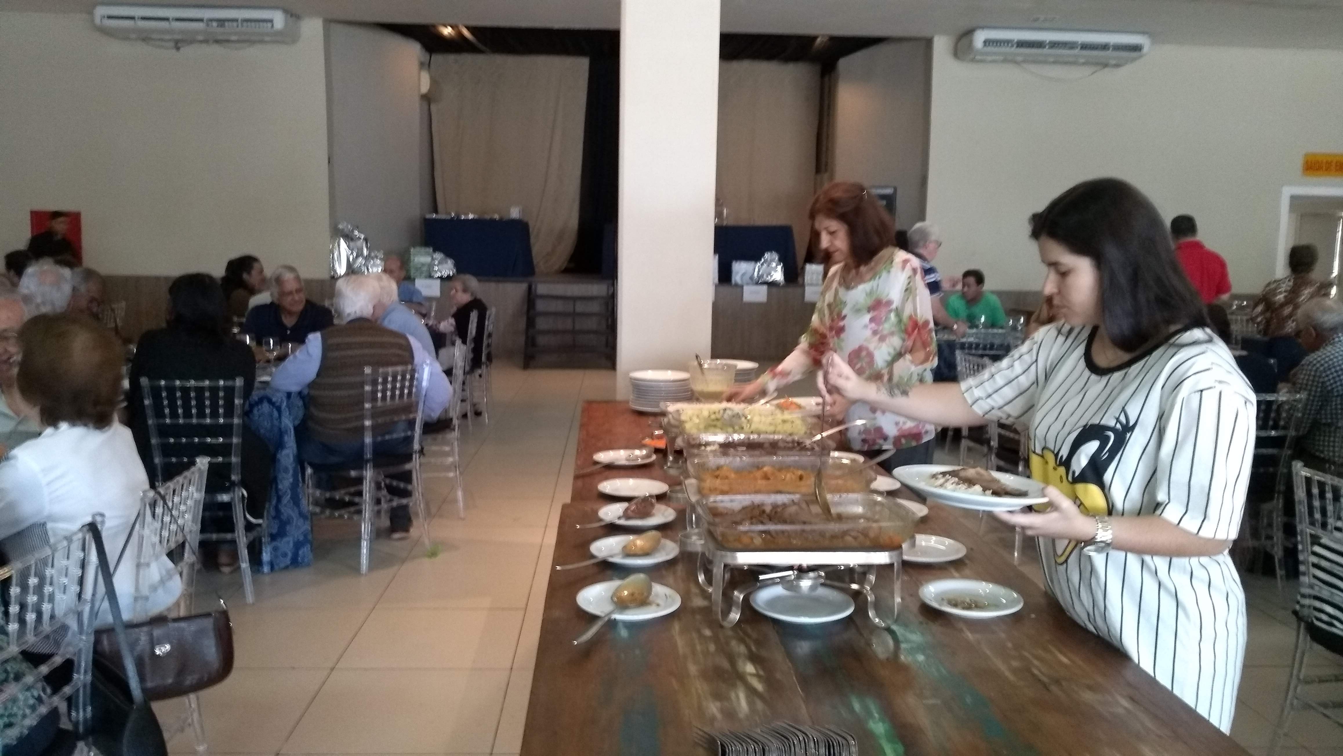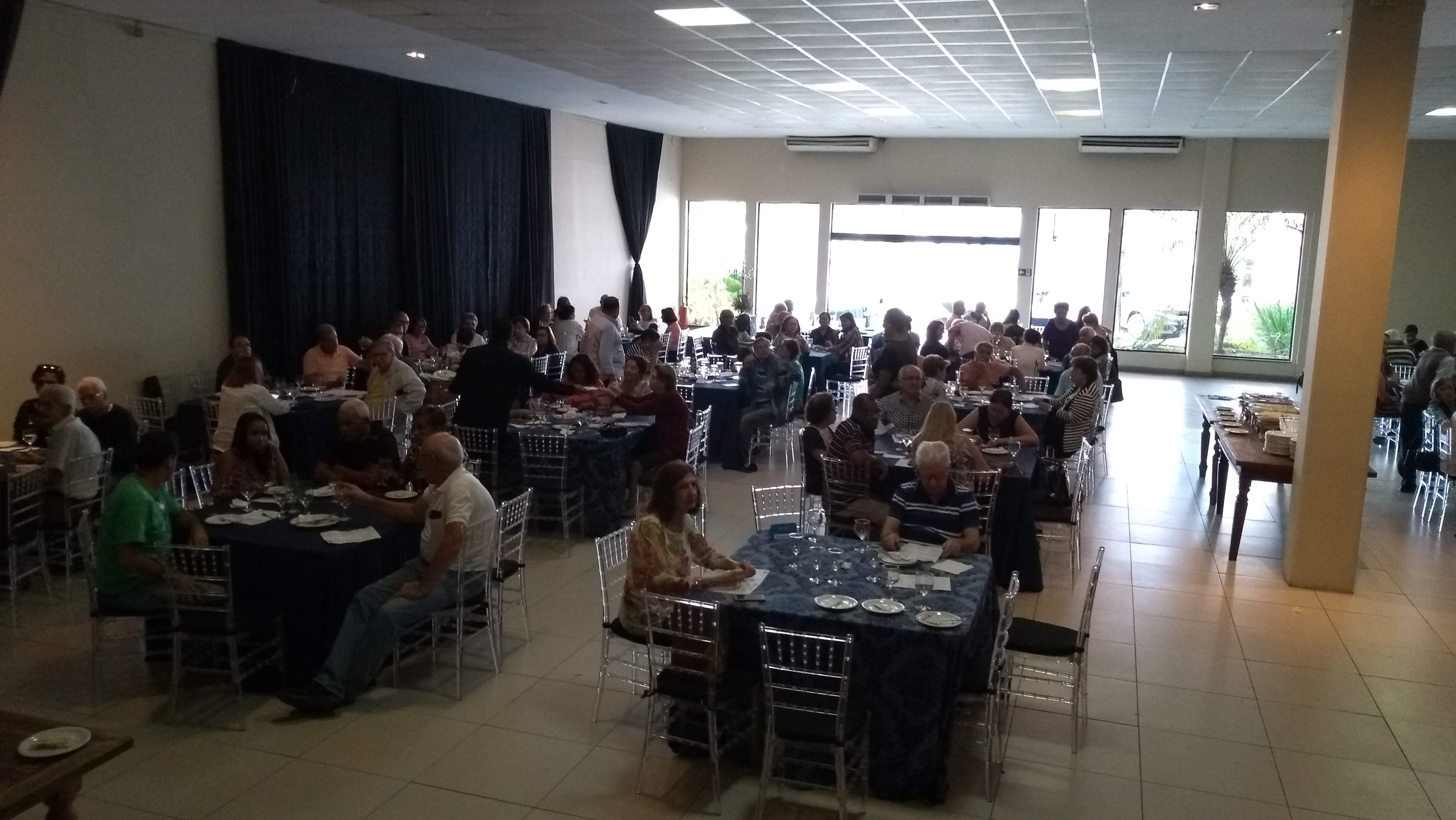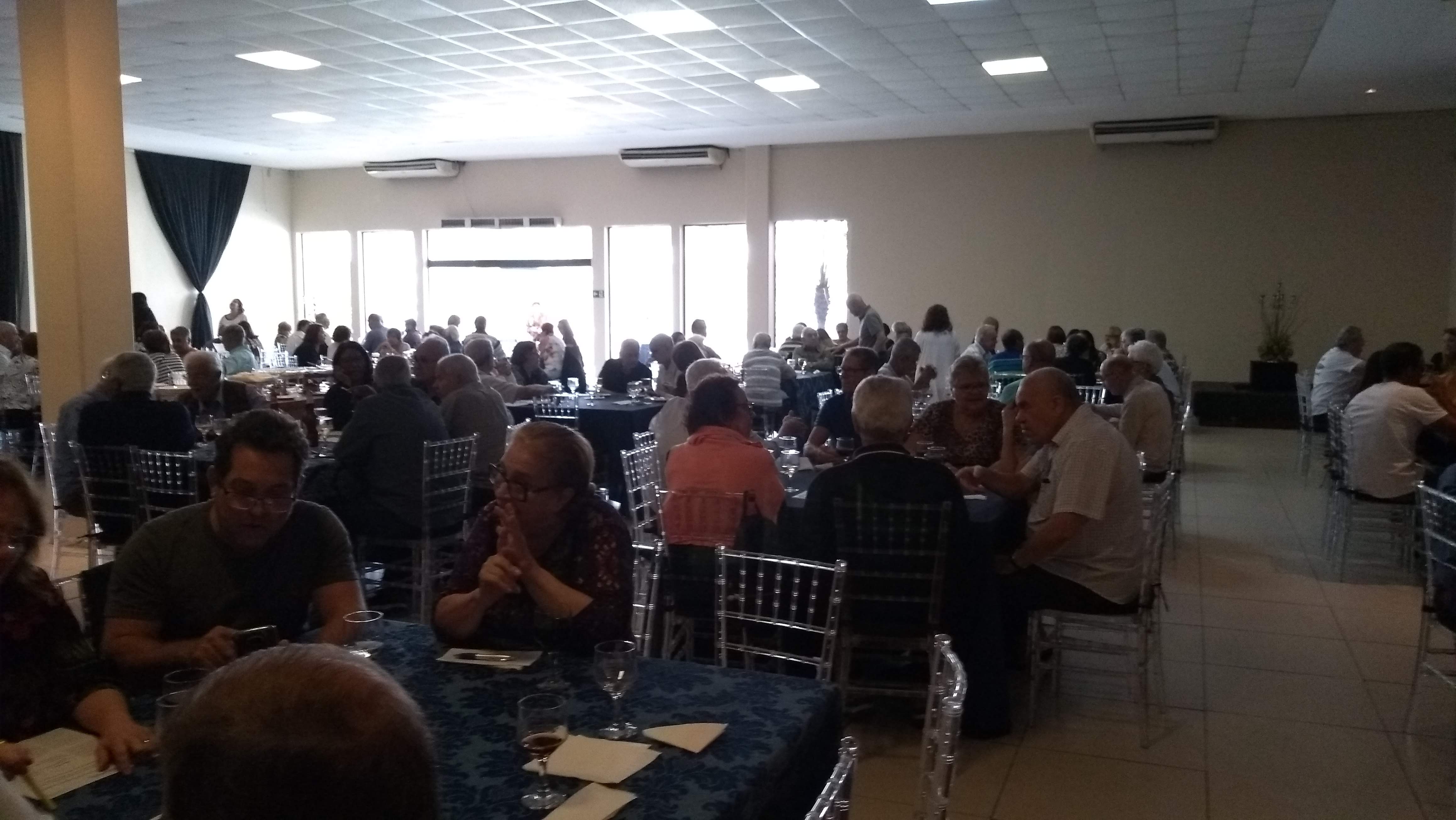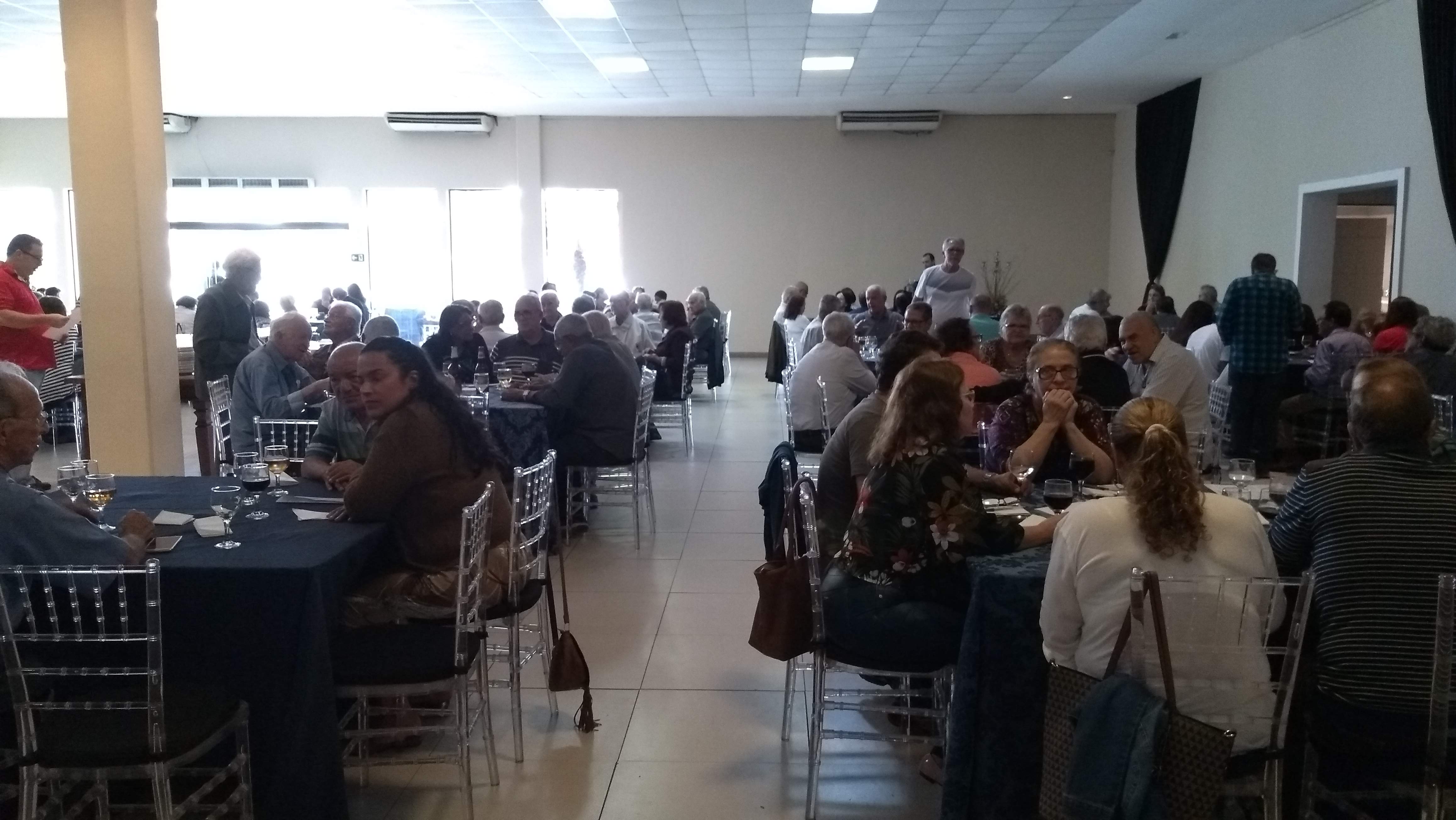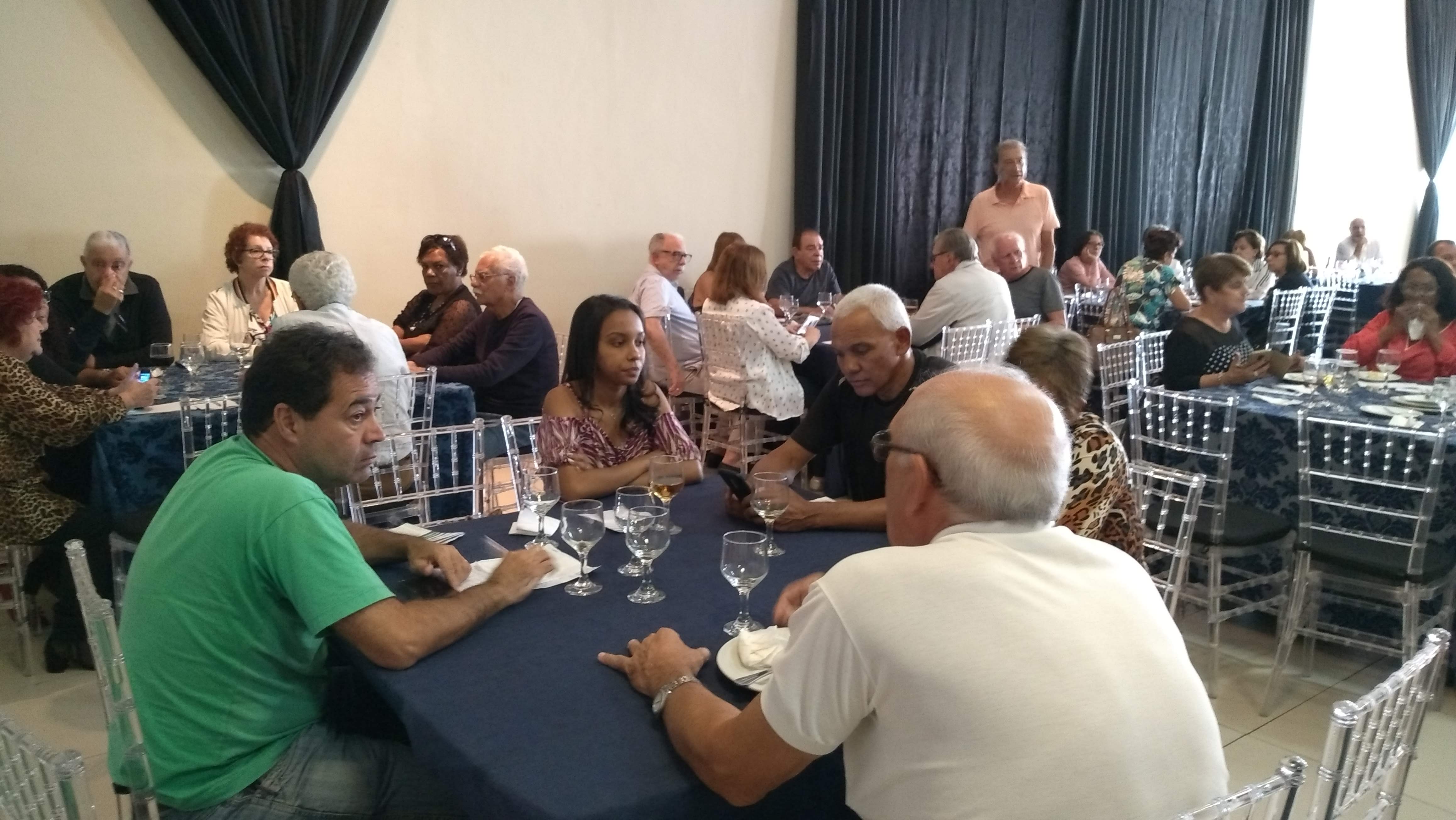 O almoço servido pelo Ricardo Buffet foi elogiado por todos que participaram do evento. Estava saboroso e todos podiam comer à vontade. O festival de prêmios foi um sucesso. Agradou a todos, principalmente às pensionistas e esposas presentes, pela qualidade dos prêmios e utilidade dos mesmos para o lar.