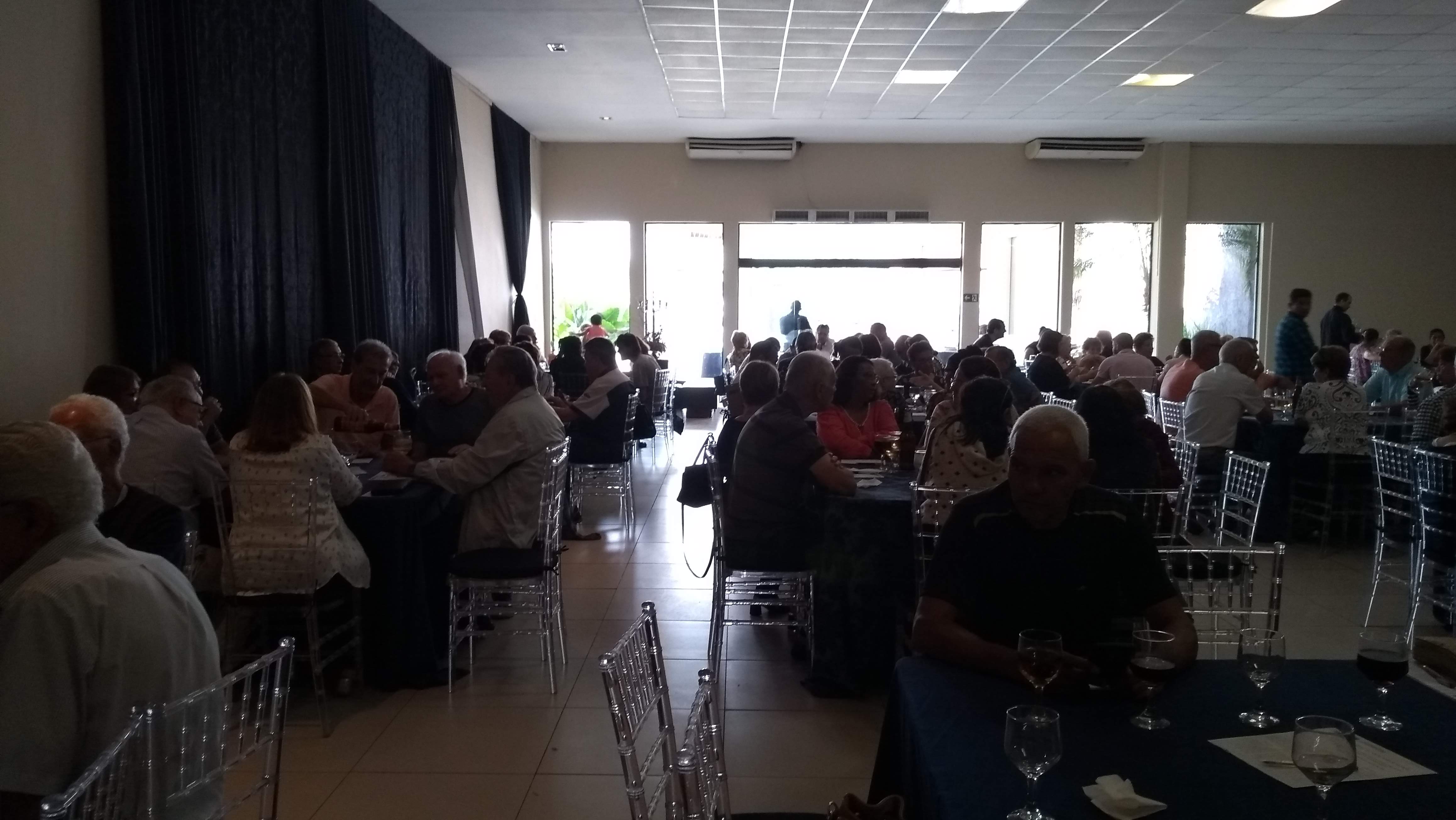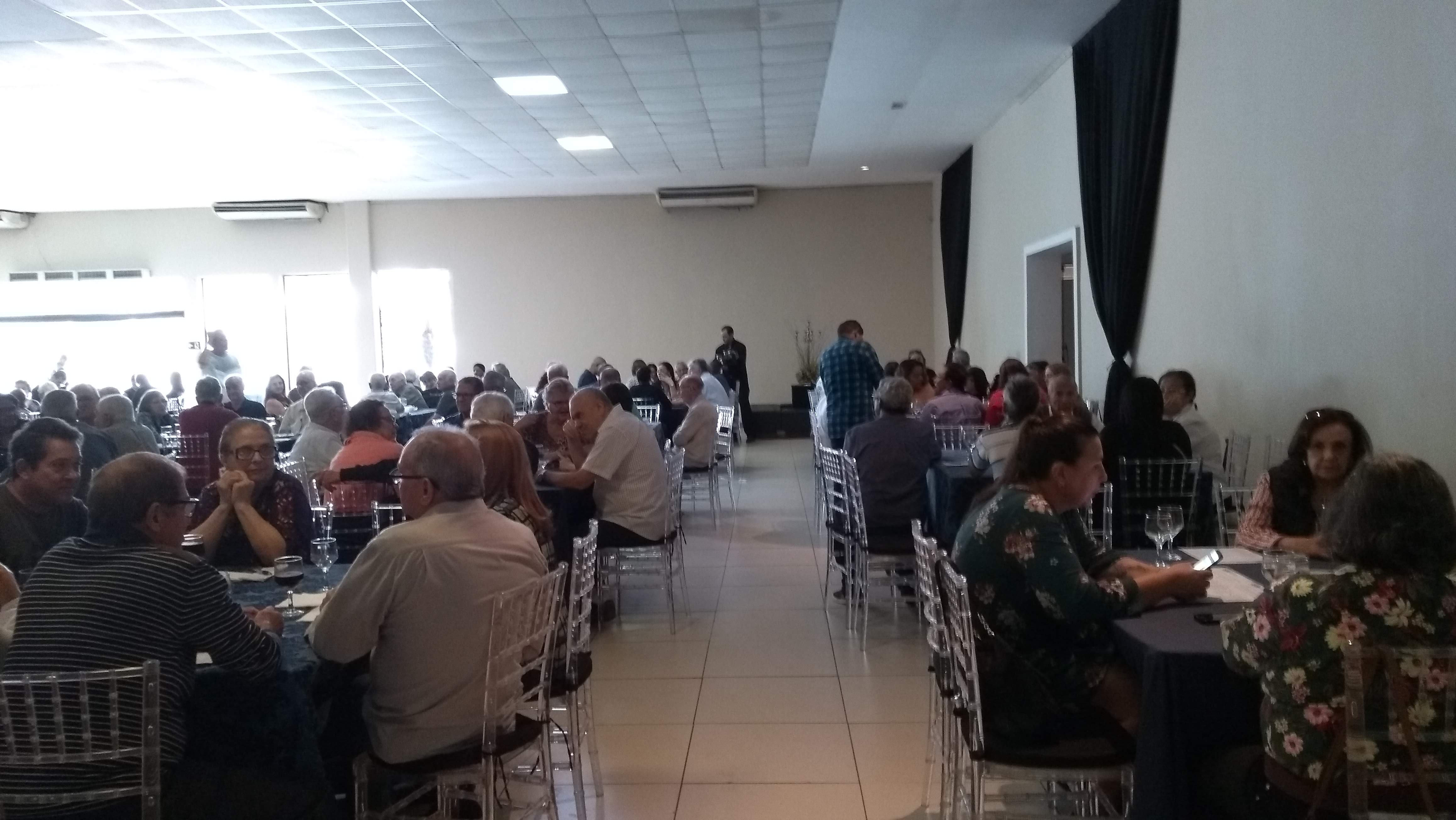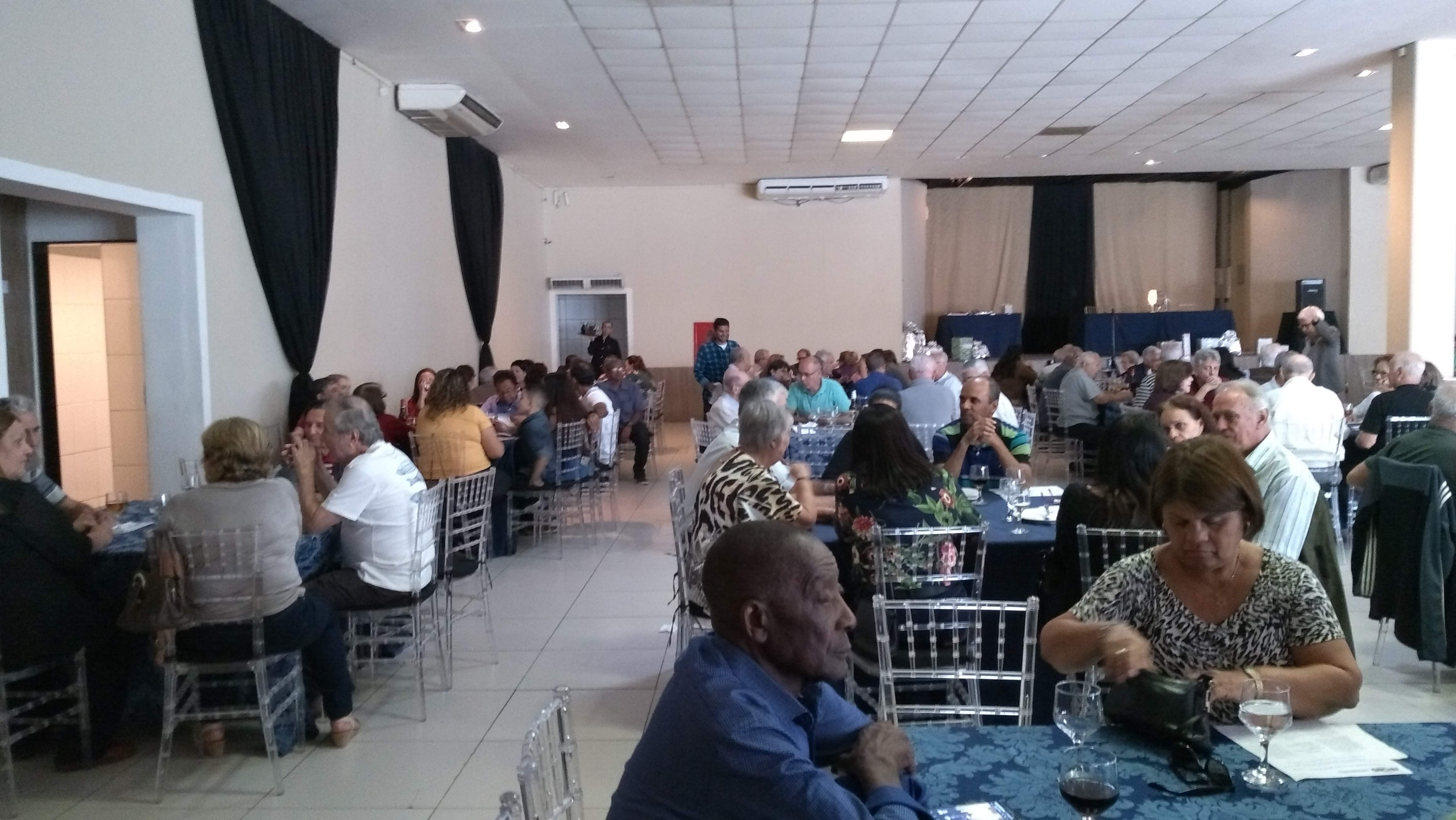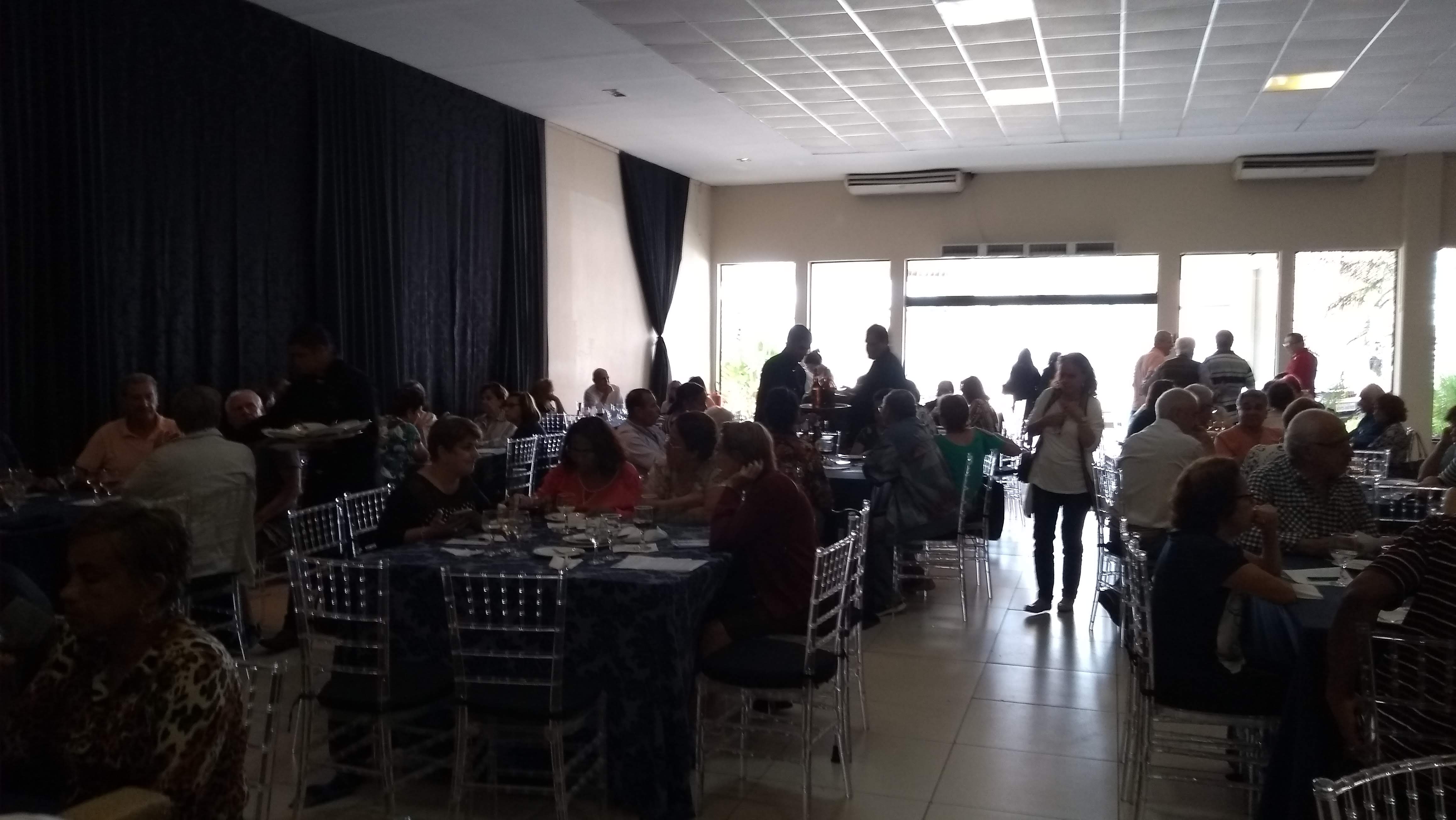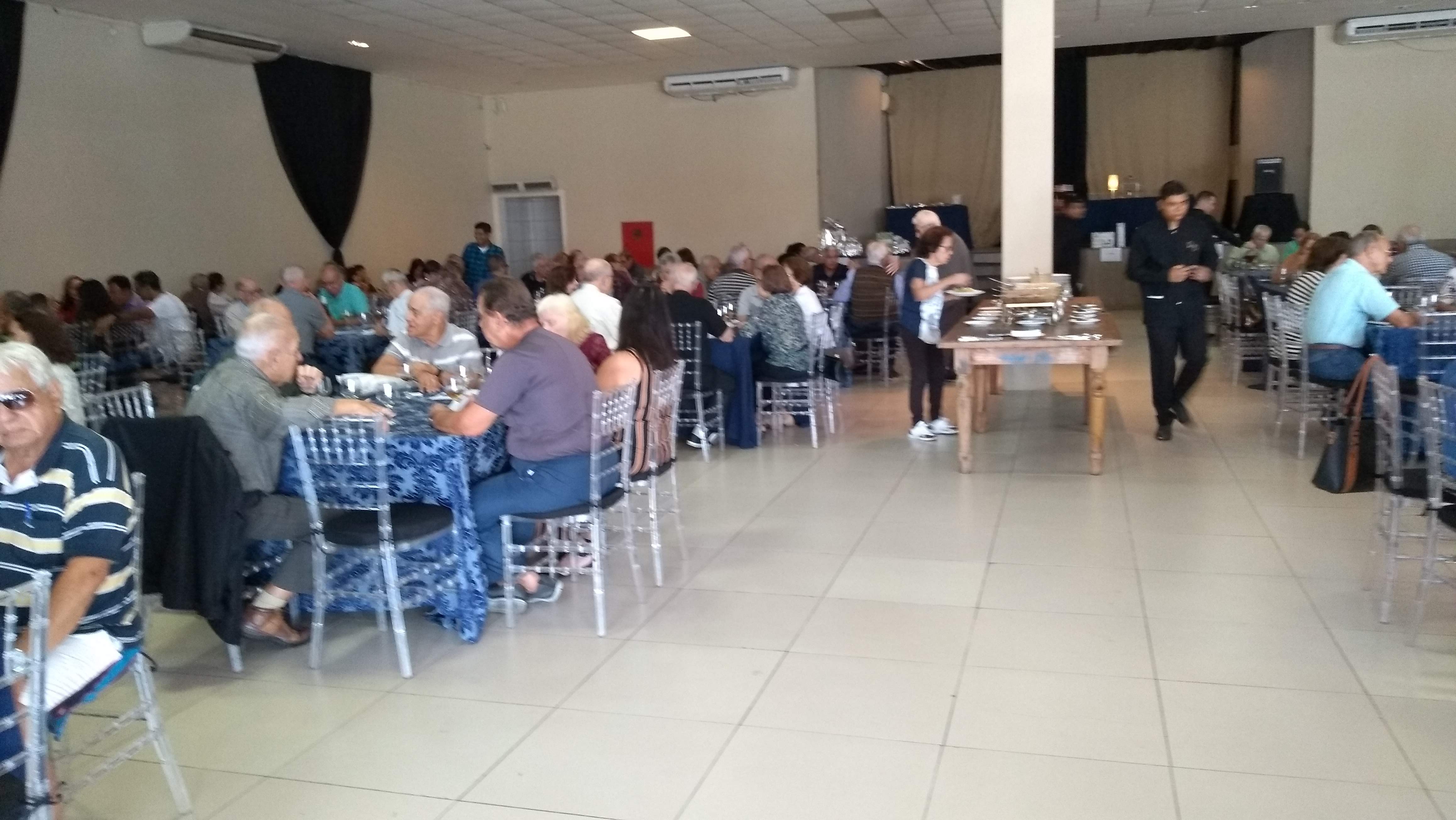 O almoço servido pelo Ricardo Buffet foi elogiado por todos que participaram do evento. Estava saboroso e todos podiam comer à vontade. O festival de prêmios foi um sucesso. Agradou a todos, principalmente às pensionistas e esposas presentes, pela qualidade dos prêmios e utilidade dos mesmos para o lar.