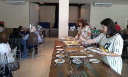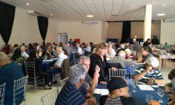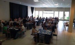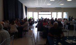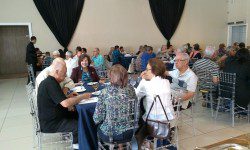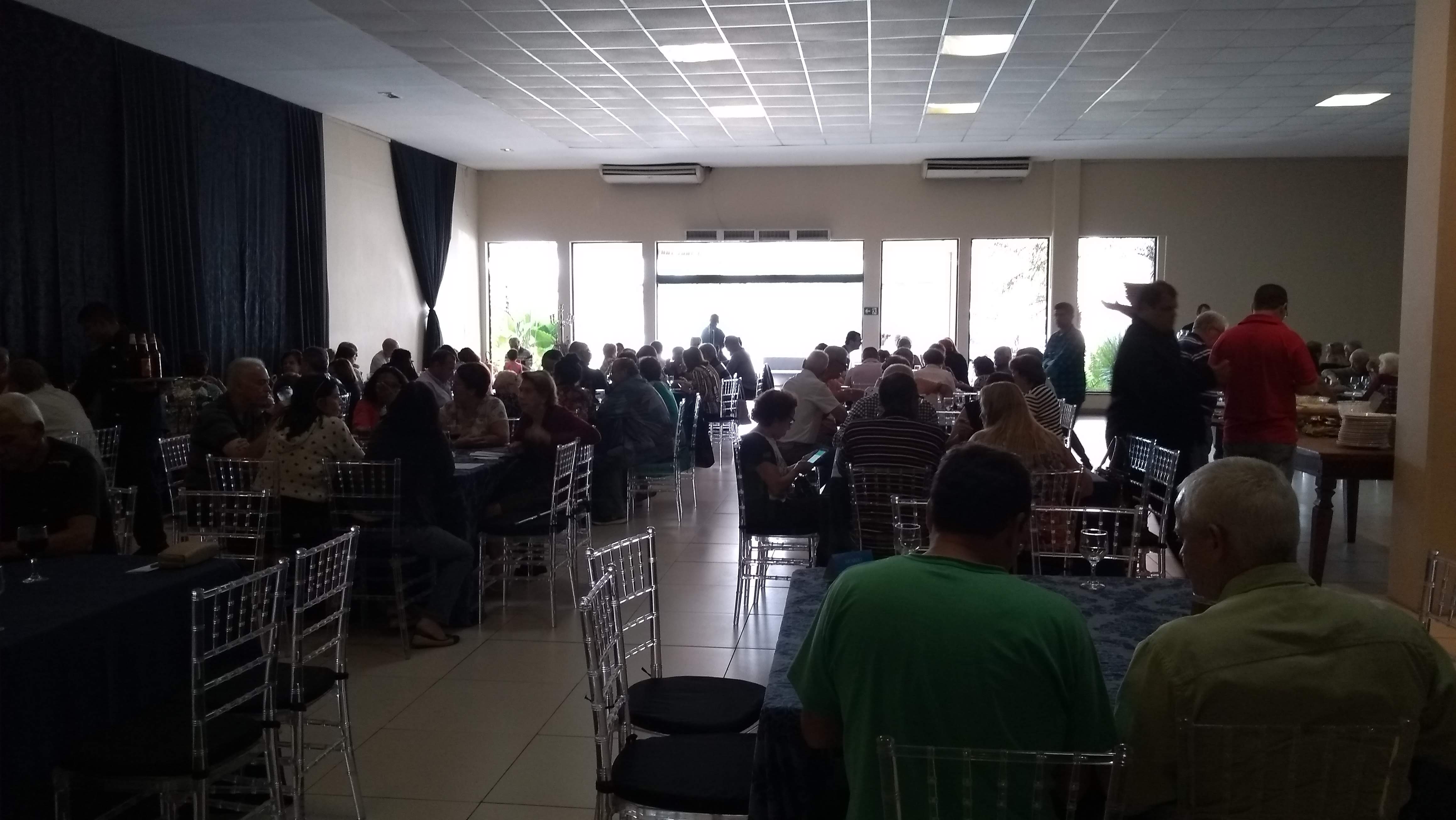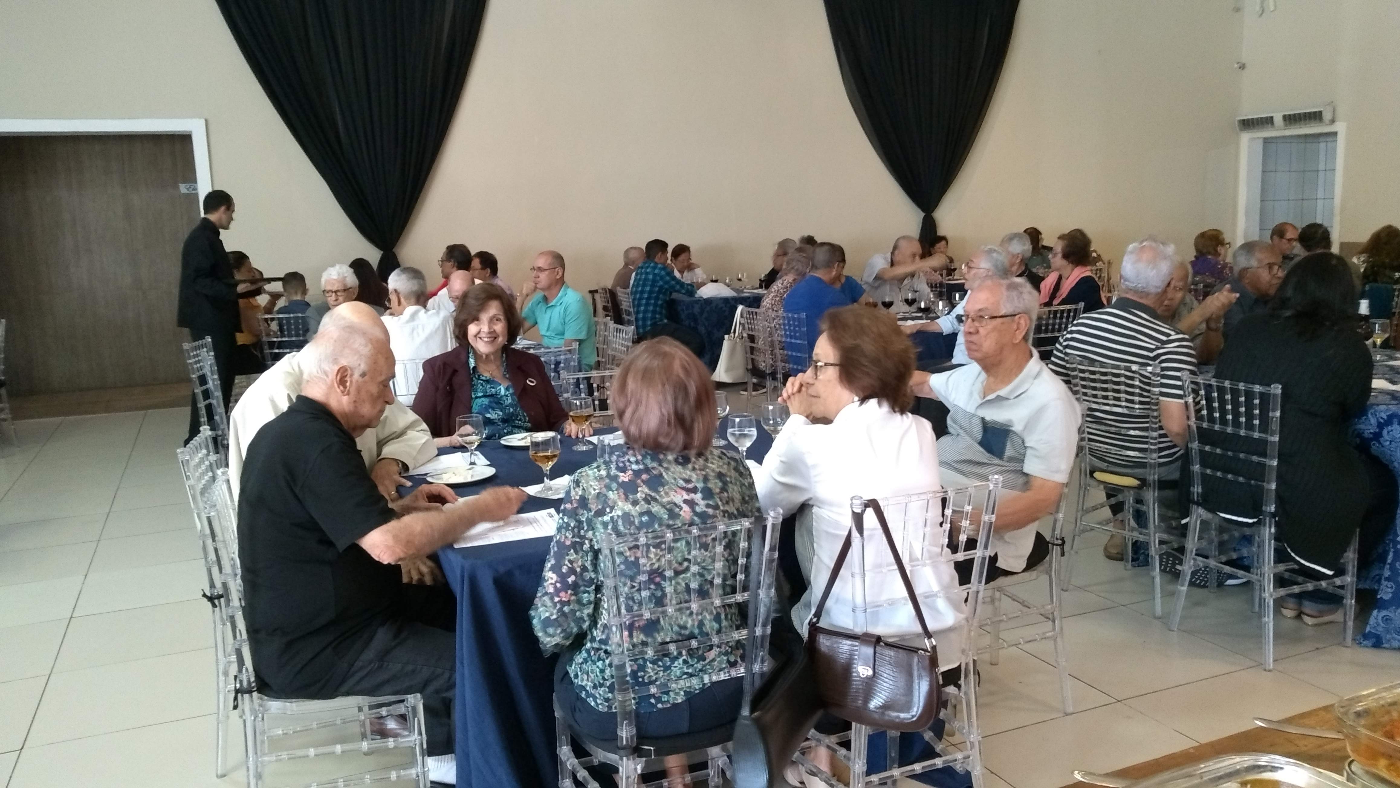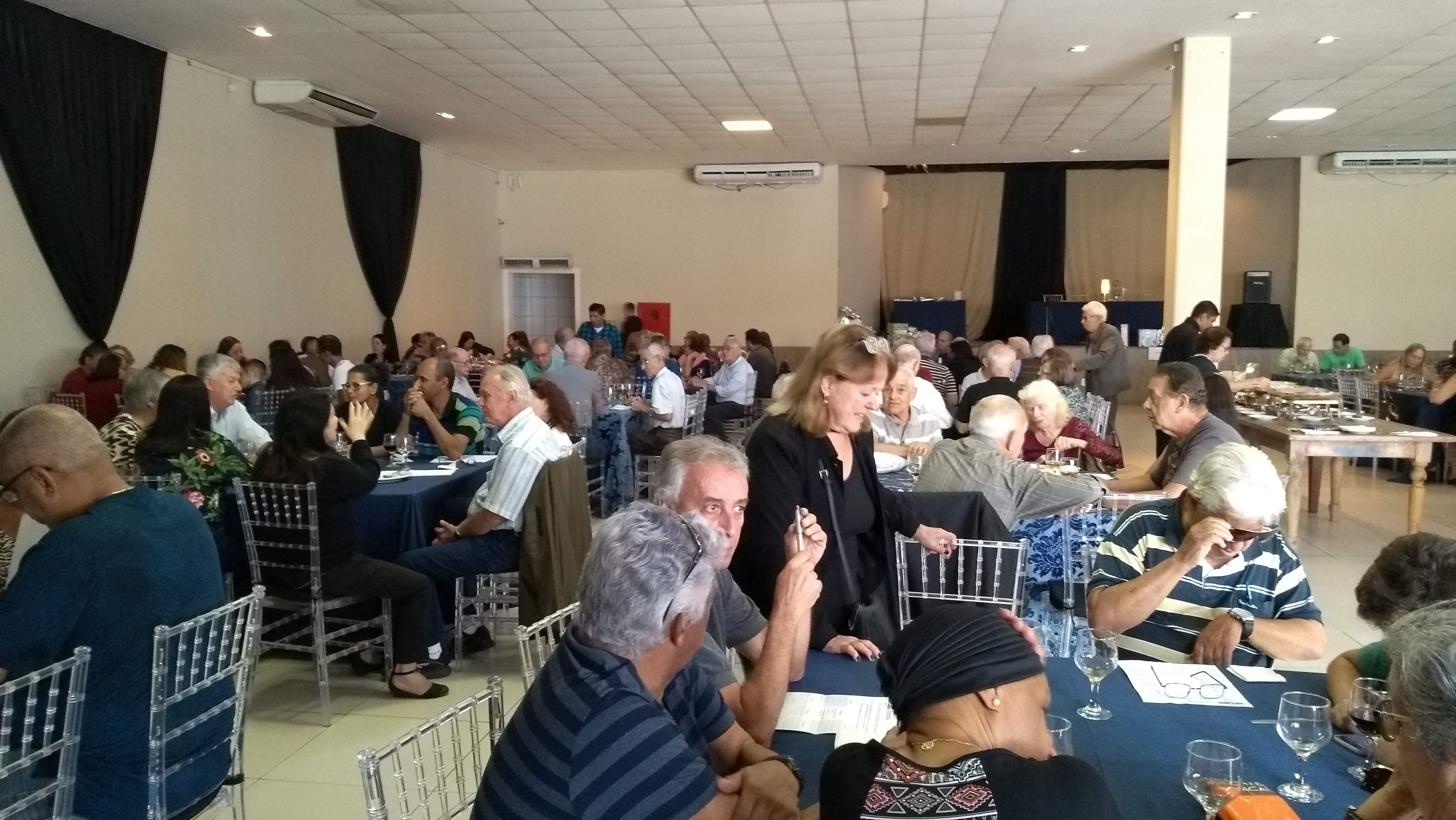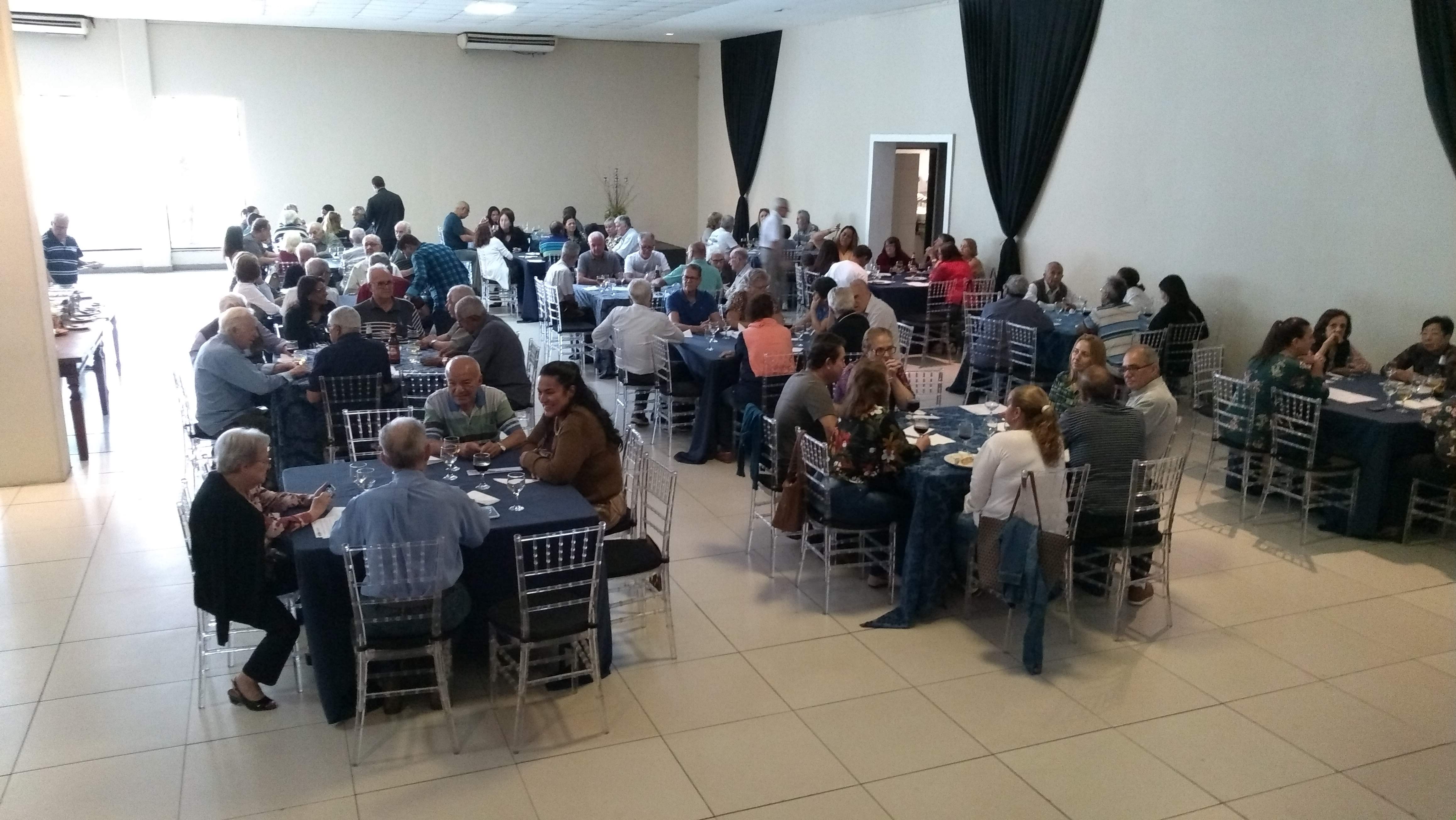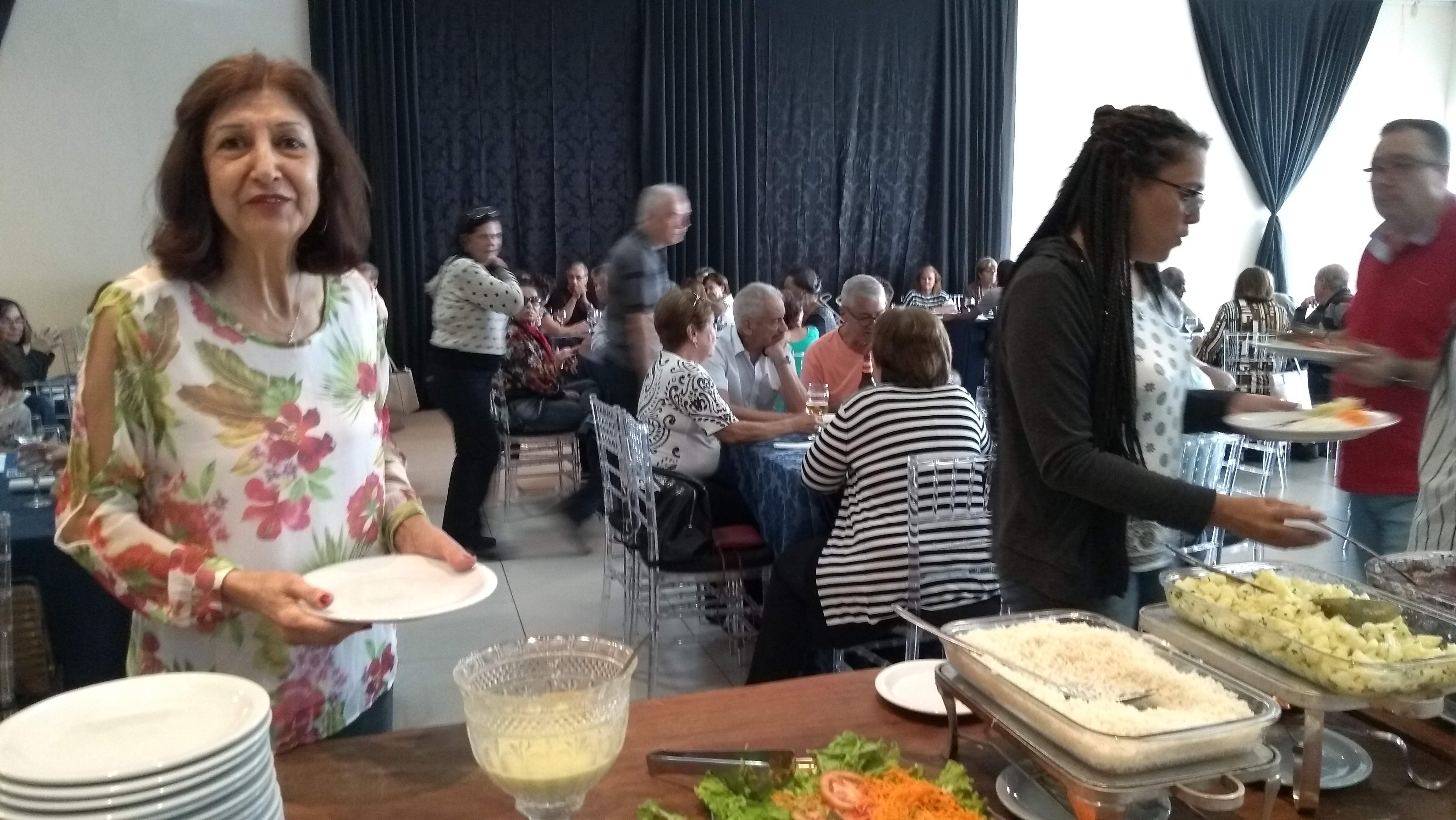 O almoço servido pelo Ricardo Buffet foi elogiado por todos que participaram do evento. Estava saboroso e todos podiam comer à vontade. O festival de prêmios foi um sucesso. Agradou a todos, principalmente às pensionistas e esposas presentes, pela qualidade dos prêmios e utilidade dos mesmos para o lar.