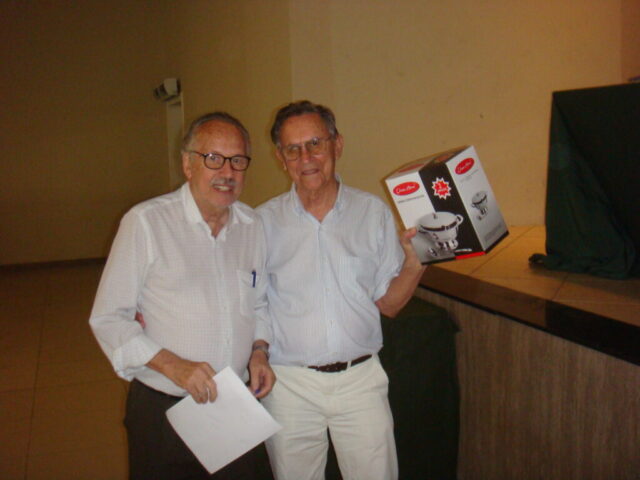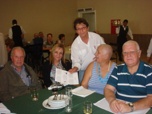 O almoço servido pelo Ricardo Buffet foi elogiado por todos que participaram do evento. Estava saboroso e todos podiam comer à vontade. O festival de prêmios foi um sucesso. Agradou a todos, principalmente às pensionistas e esposas presentes, pela qualidade dos prêmios e utilidade dos mesmos para o lar.