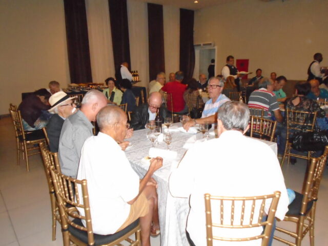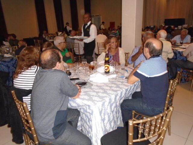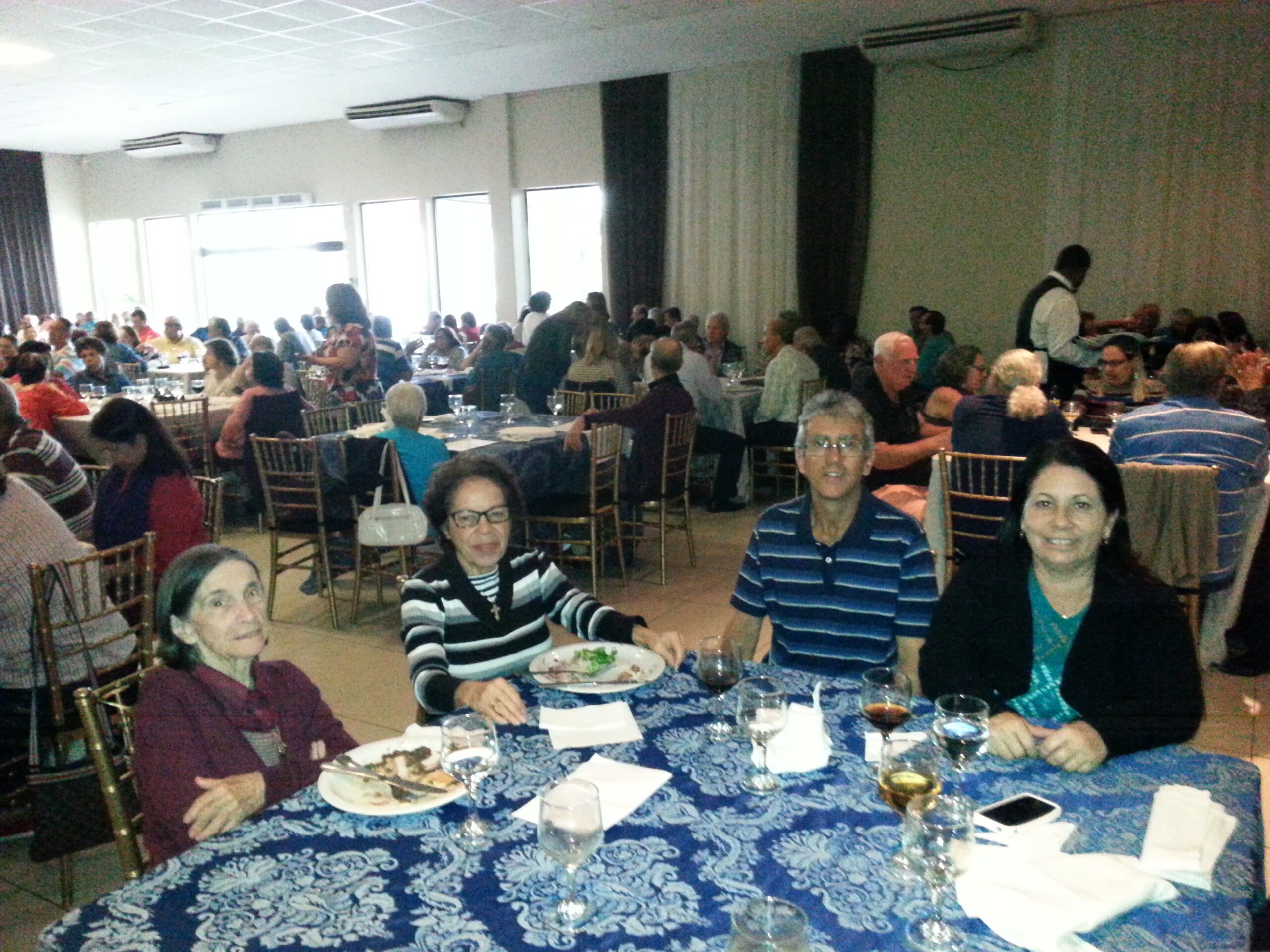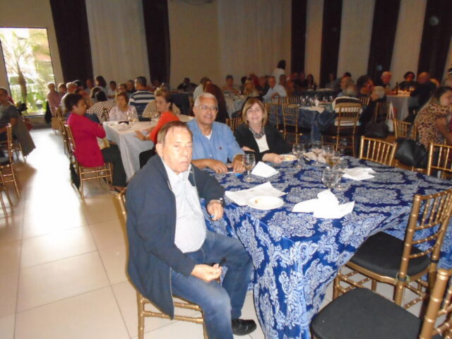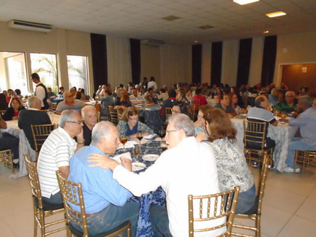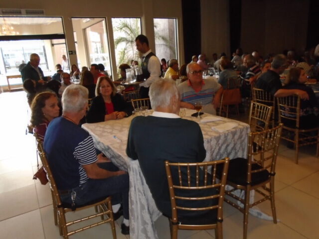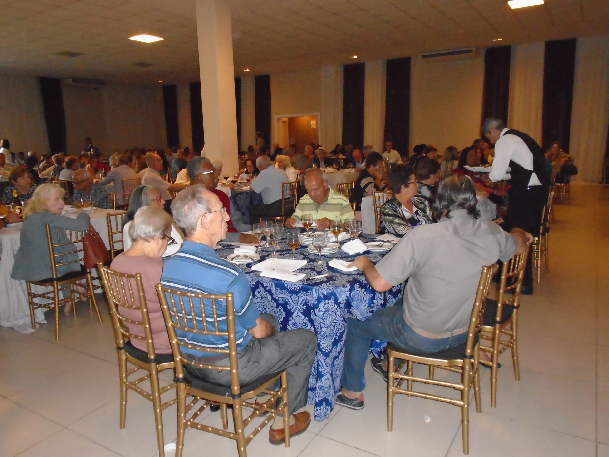 O almoço servido pelo Ricardo Buffet foi elogiado por todos que participaram do evento. Estava saboroso e todos podiam comer à vontade. O festival de prêmios foi um sucesso. Agradou a todos, principalmente às pensionistas e esposas presentes, pela qualidade dos prêmios e utilidade dos mesmos para o lar.