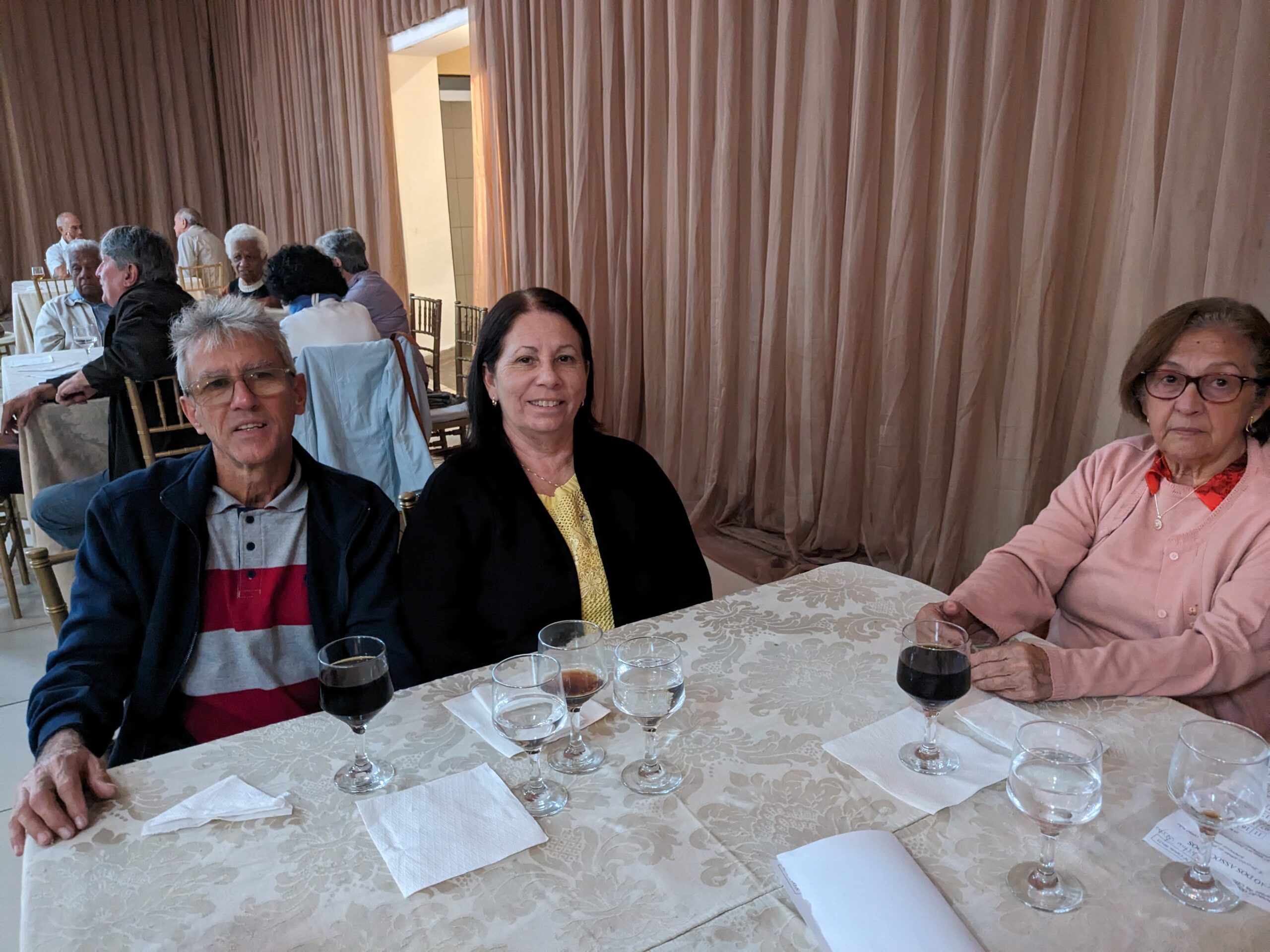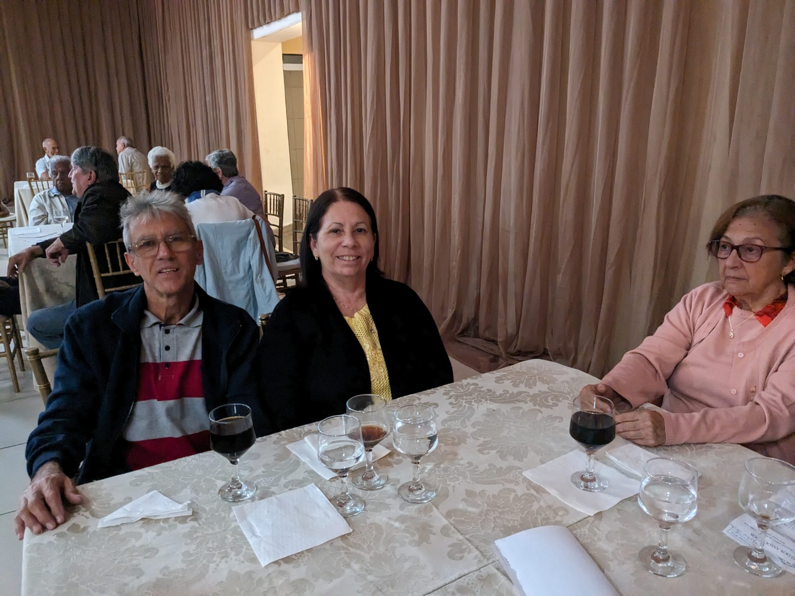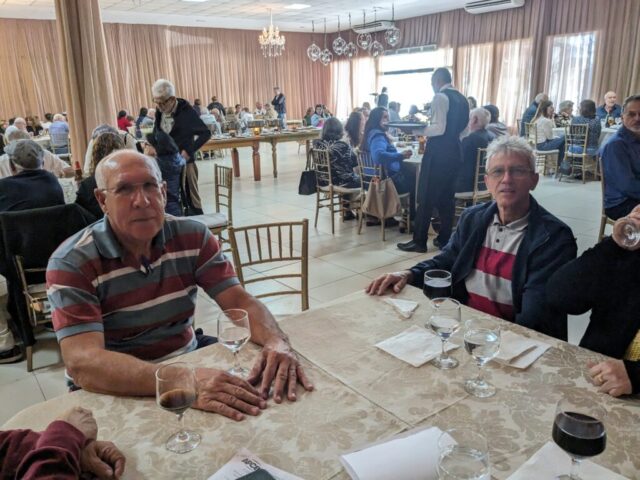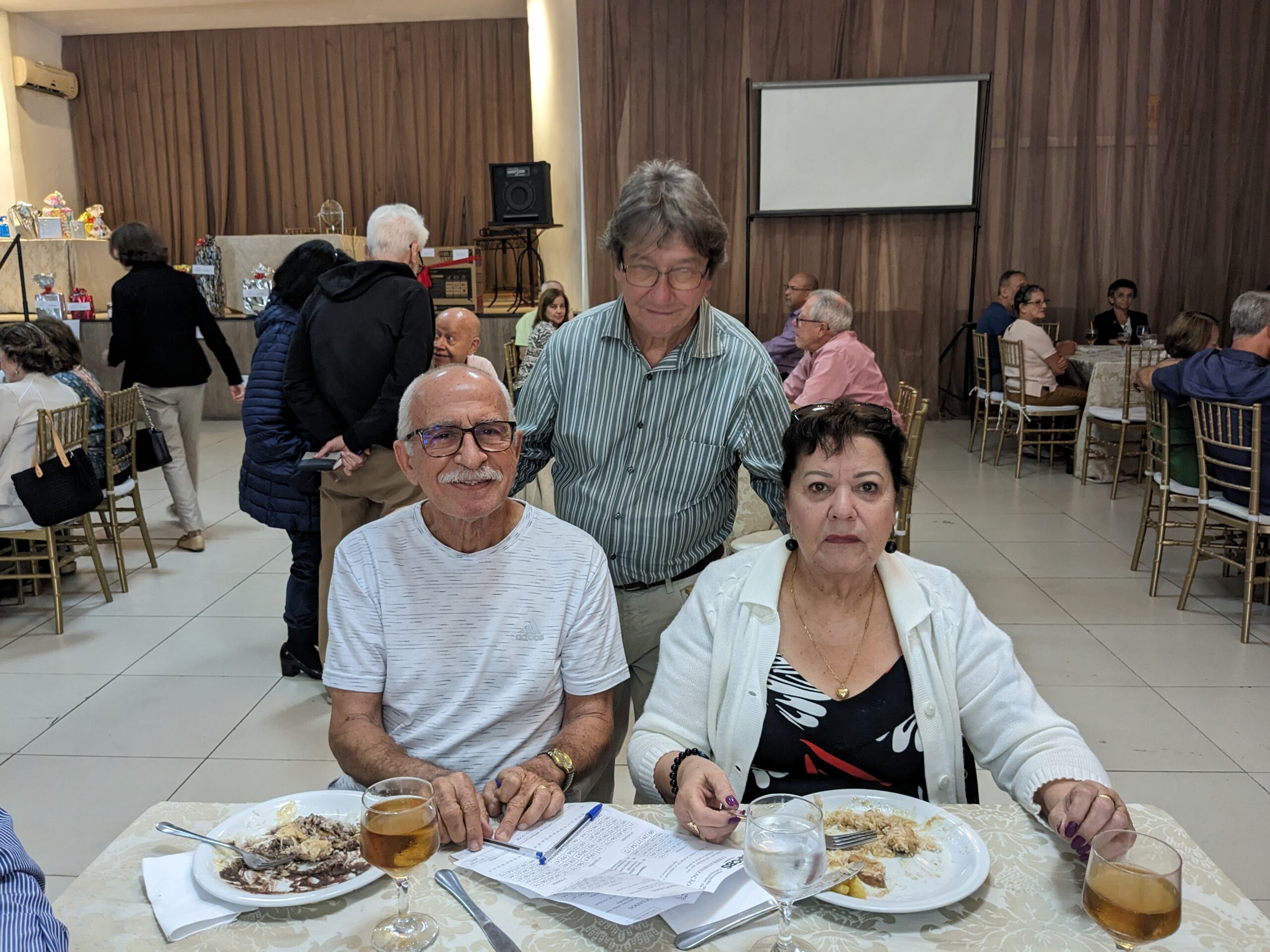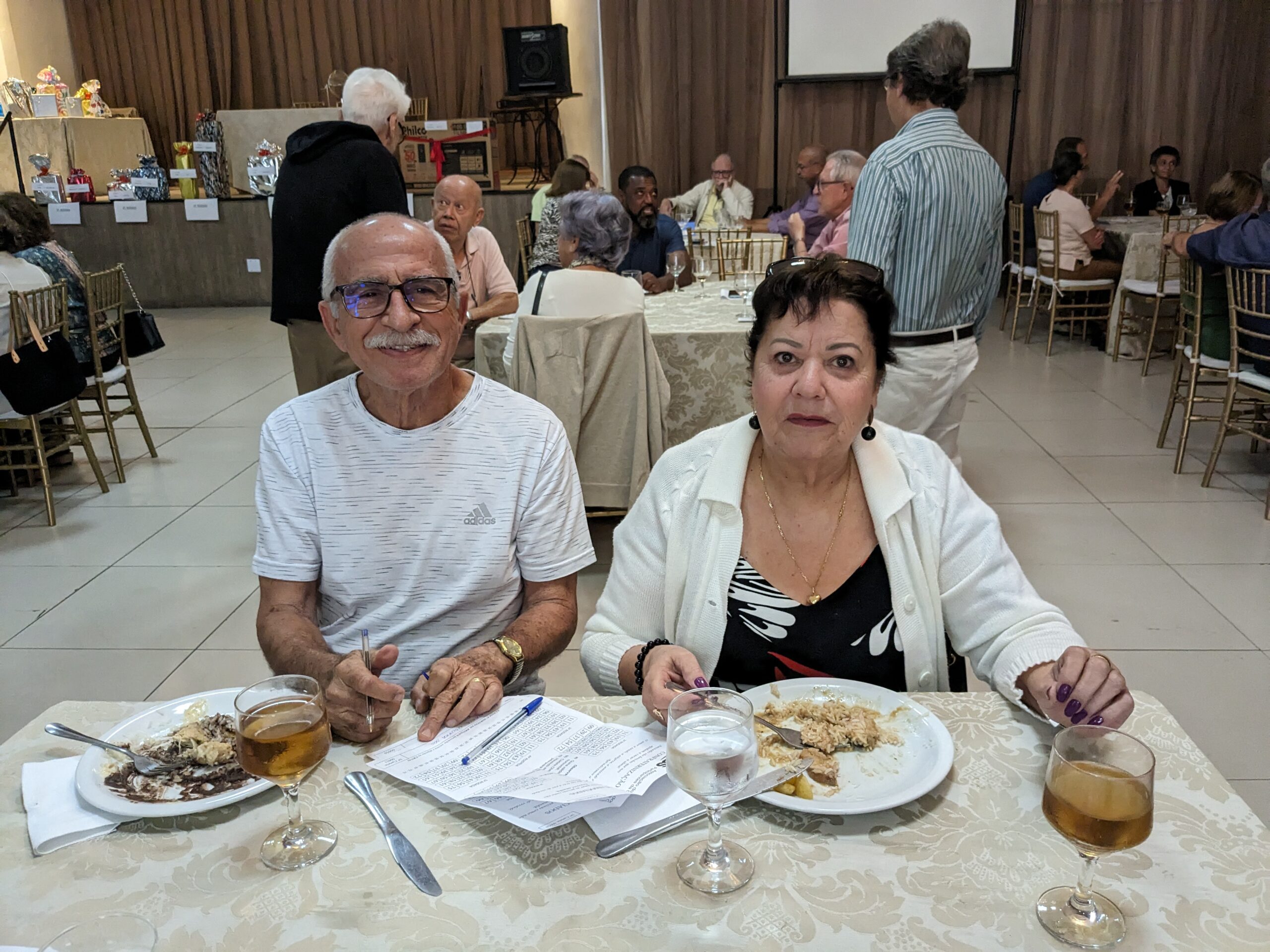 O almoço servido pelo Ricardo Buffet foi elogiado por todos que participaram do evento. Estava saboroso e todos podiam comer à vontade. O festival de prêmios foi um sucesso. Agradou a todos, principalmente às pensionistas e esposas presentes, pela qualidade dos prêmios e utilidade dos mesmos para o lar.