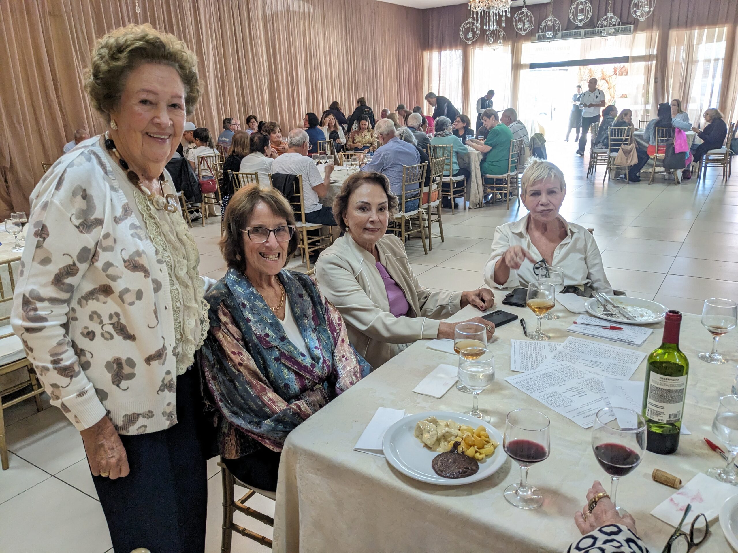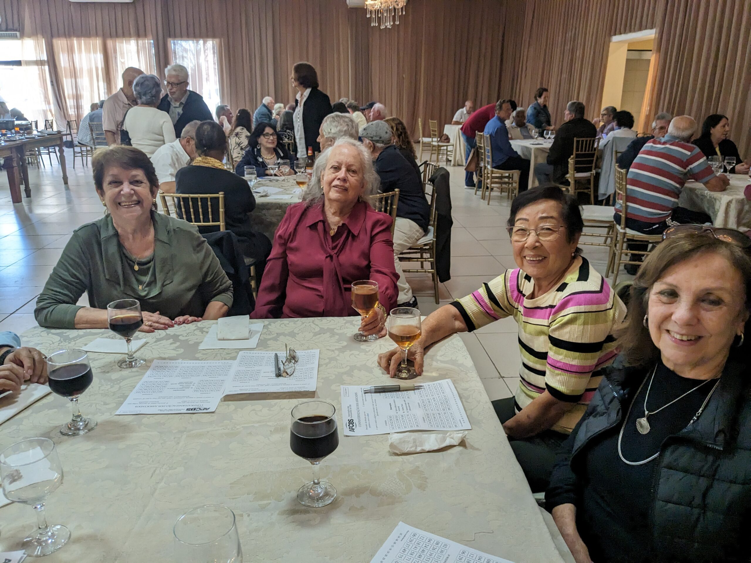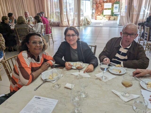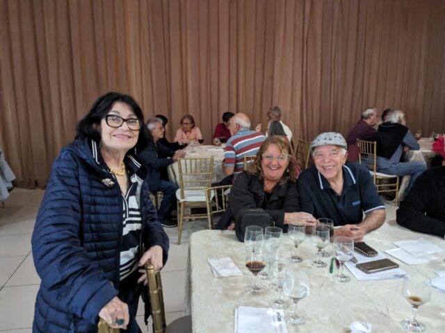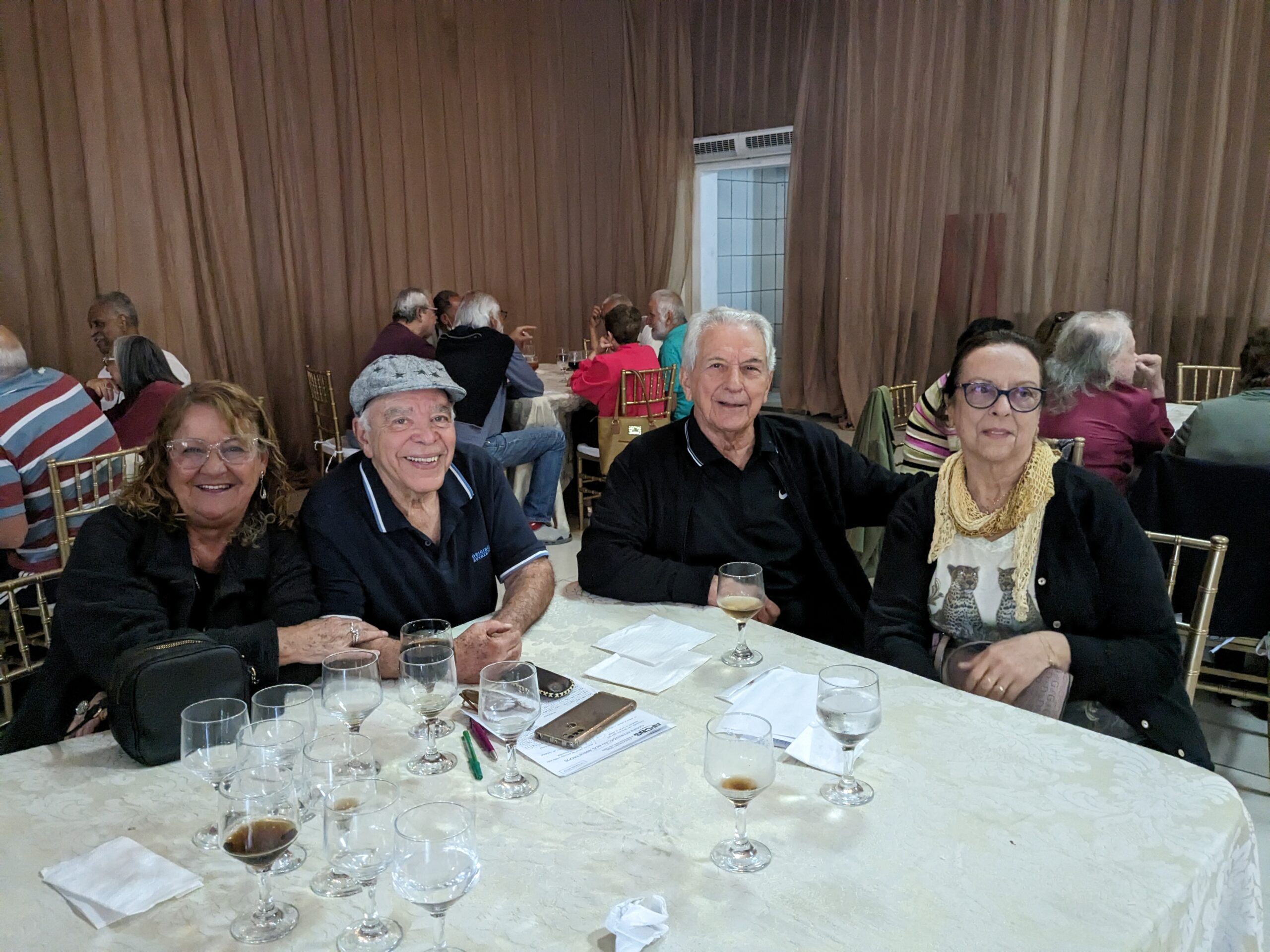 O almoço servido pelo Ricardo Buffet foi elogiado por todos que participaram do evento. Estava saboroso e todos podiam comer à vontade. O festival de prêmios foi um sucesso. Agradou a todos, principalmente às pensionistas e esposas presentes, pela qualidade dos prêmios e utilidade dos mesmos para o lar.