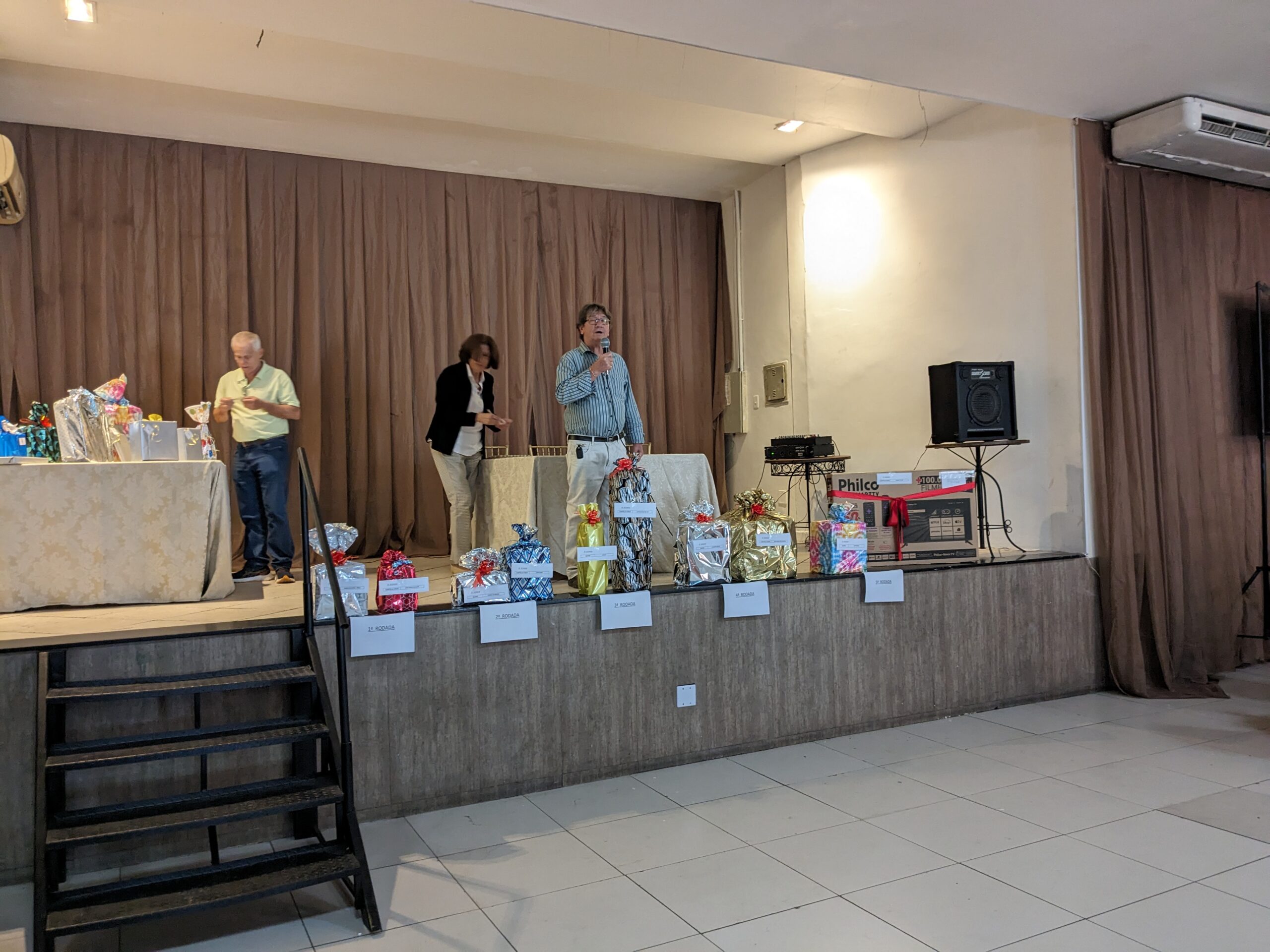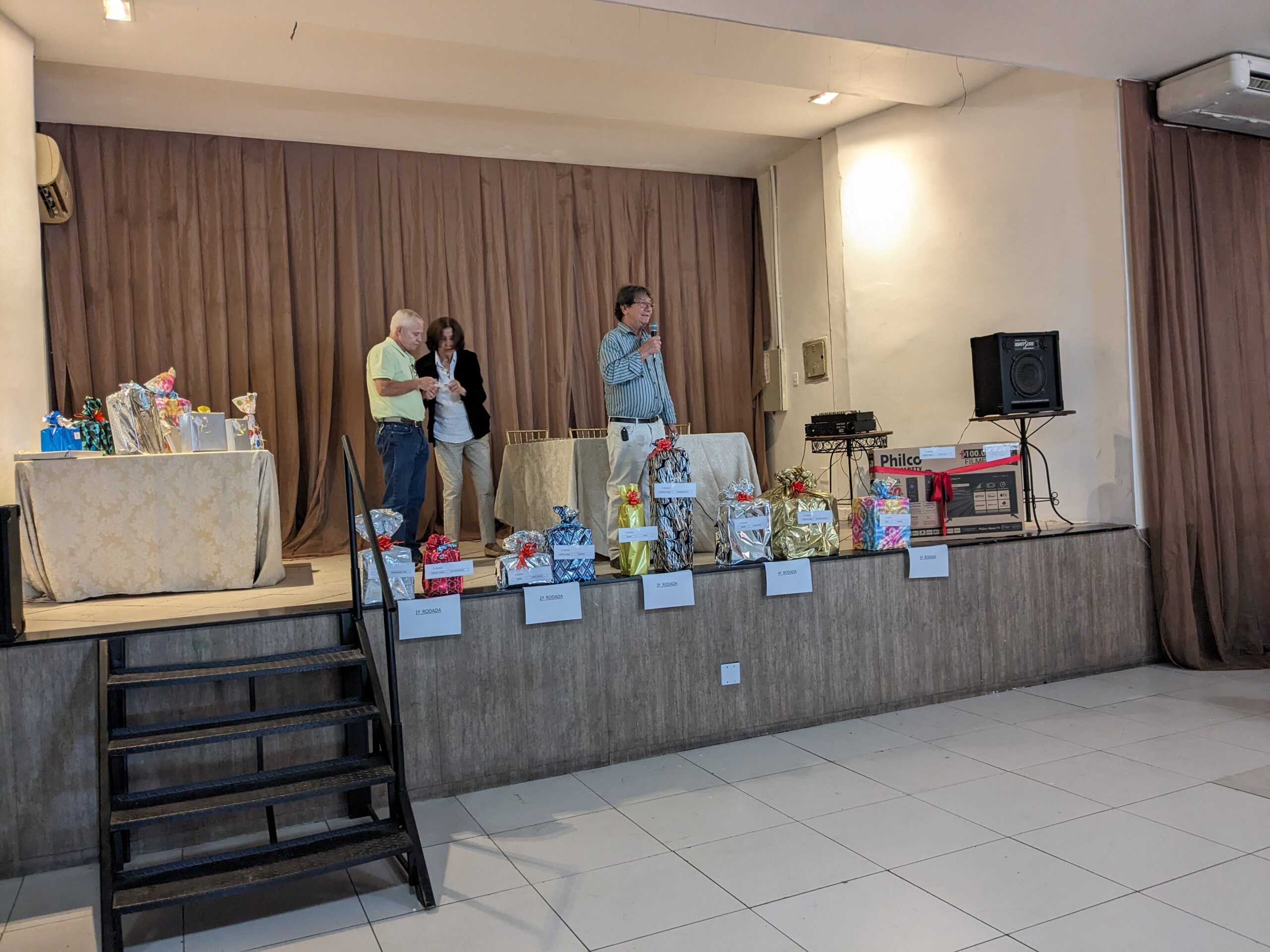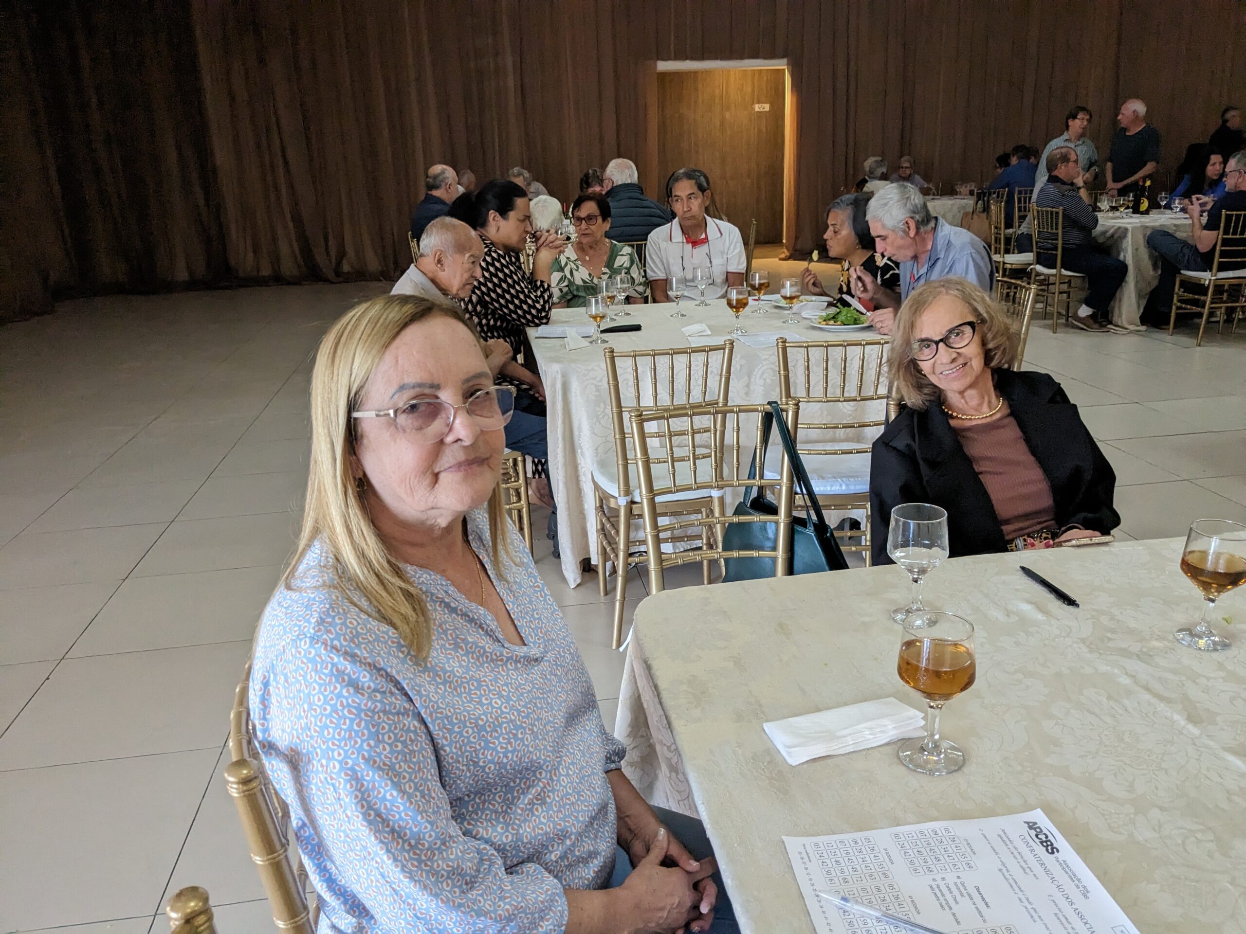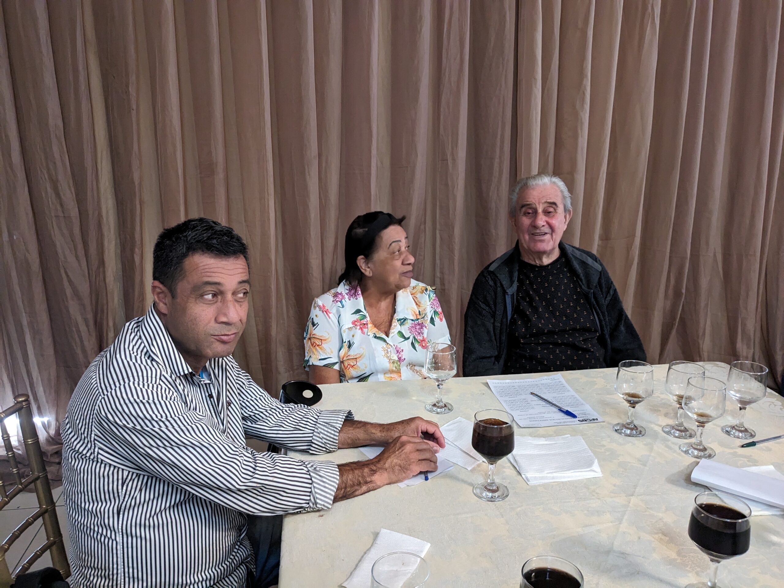O almoço servido pelo Ricardo Buffet foi elogiado por todos que participaram do evento. Estava saboroso e todos podiam comer à vontade. O festival de prêmios foi um sucesso. Agradou a todos, principalmente às pensionistas e esposas presentes, pela qualidade dos prêmios e utilidade dos mesmos para o lar.
