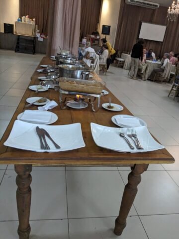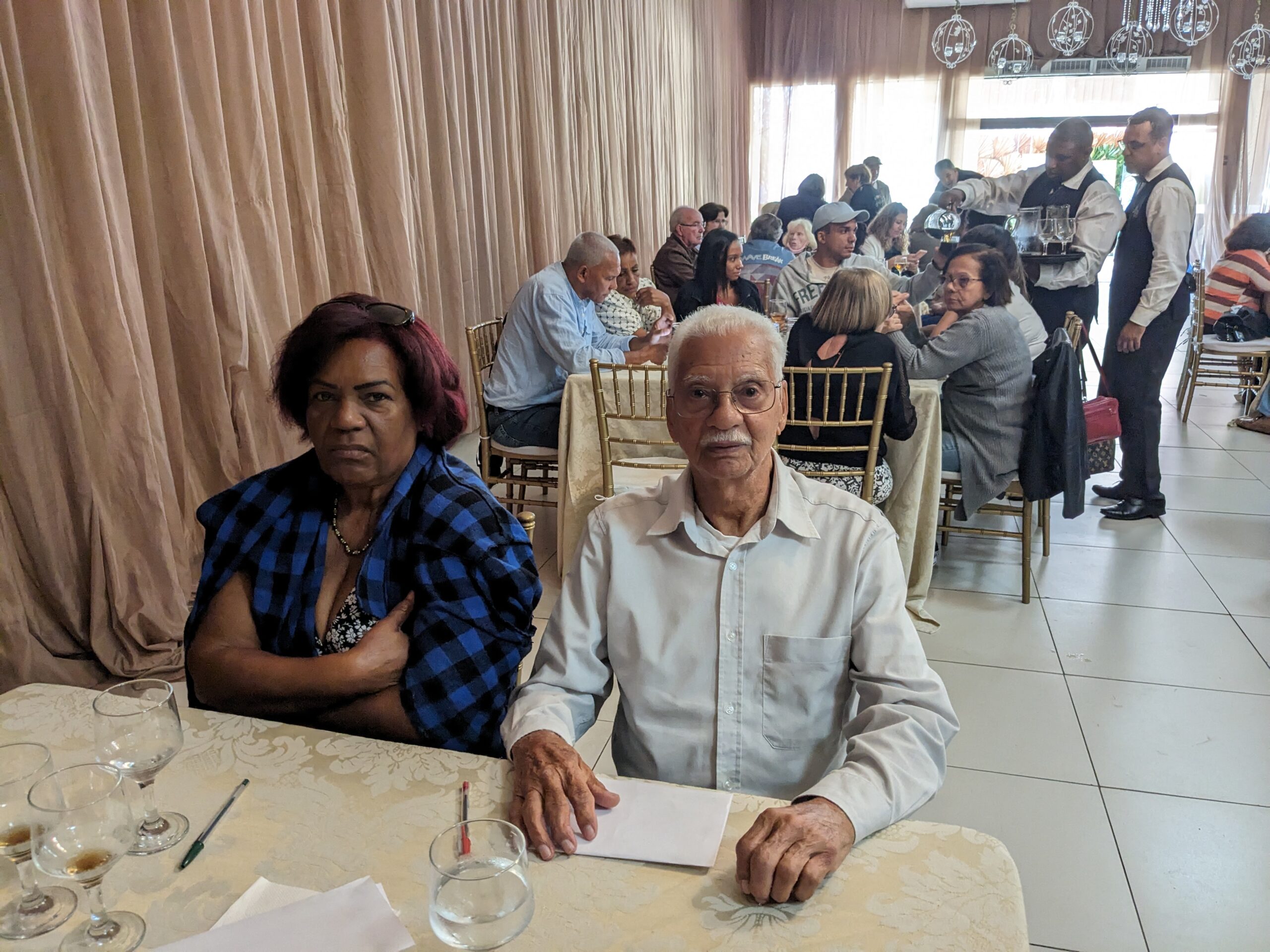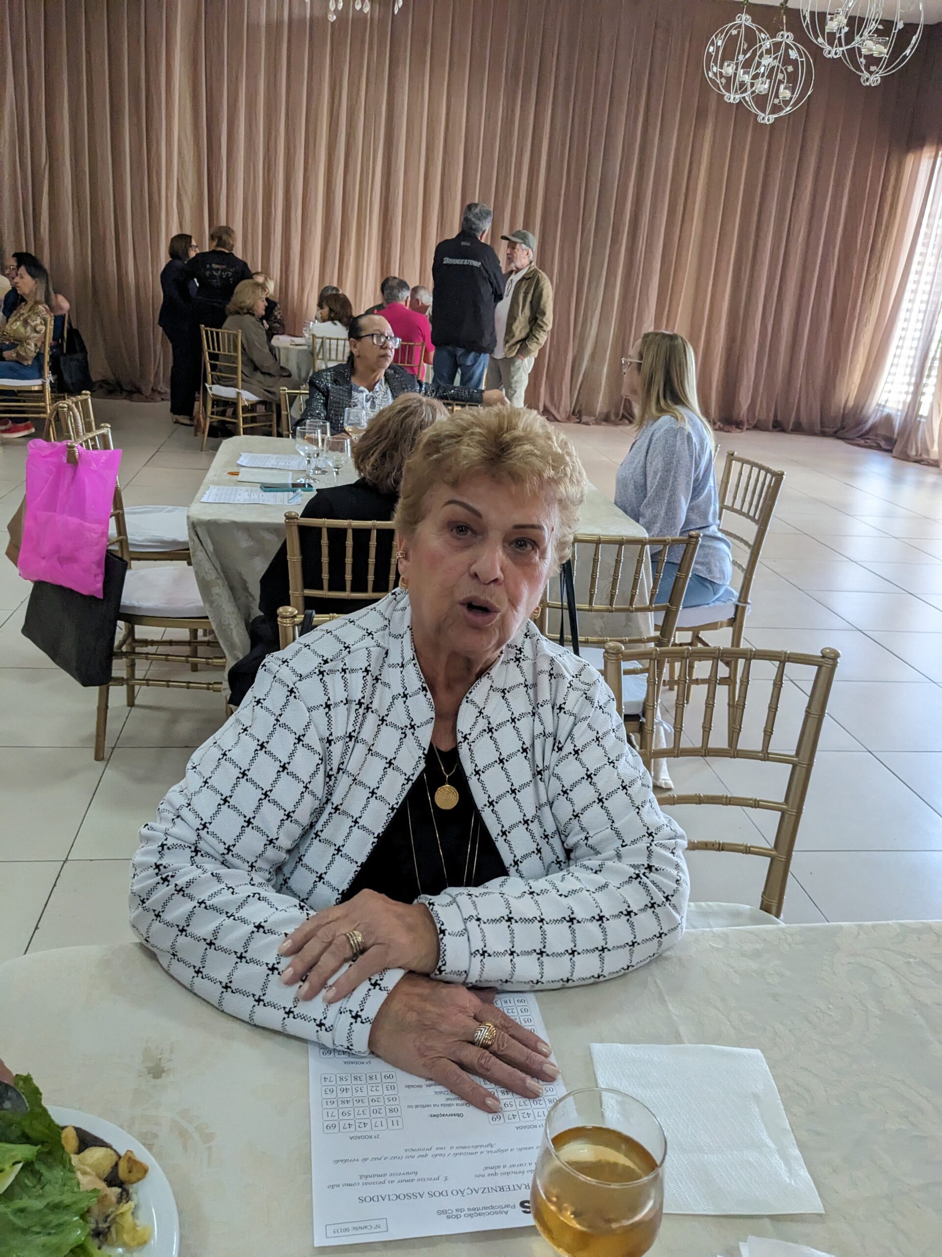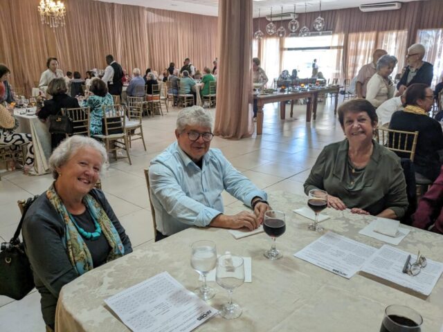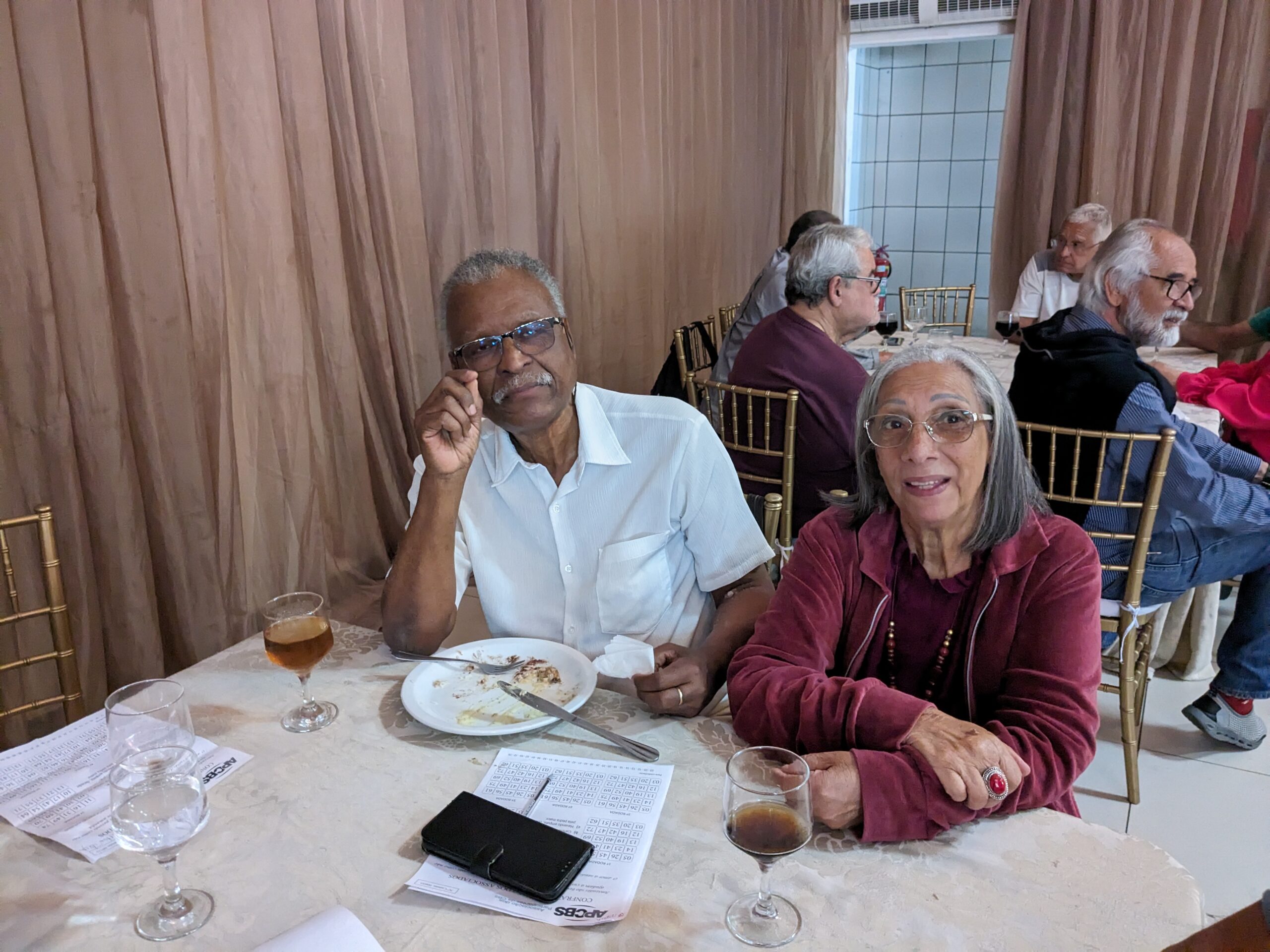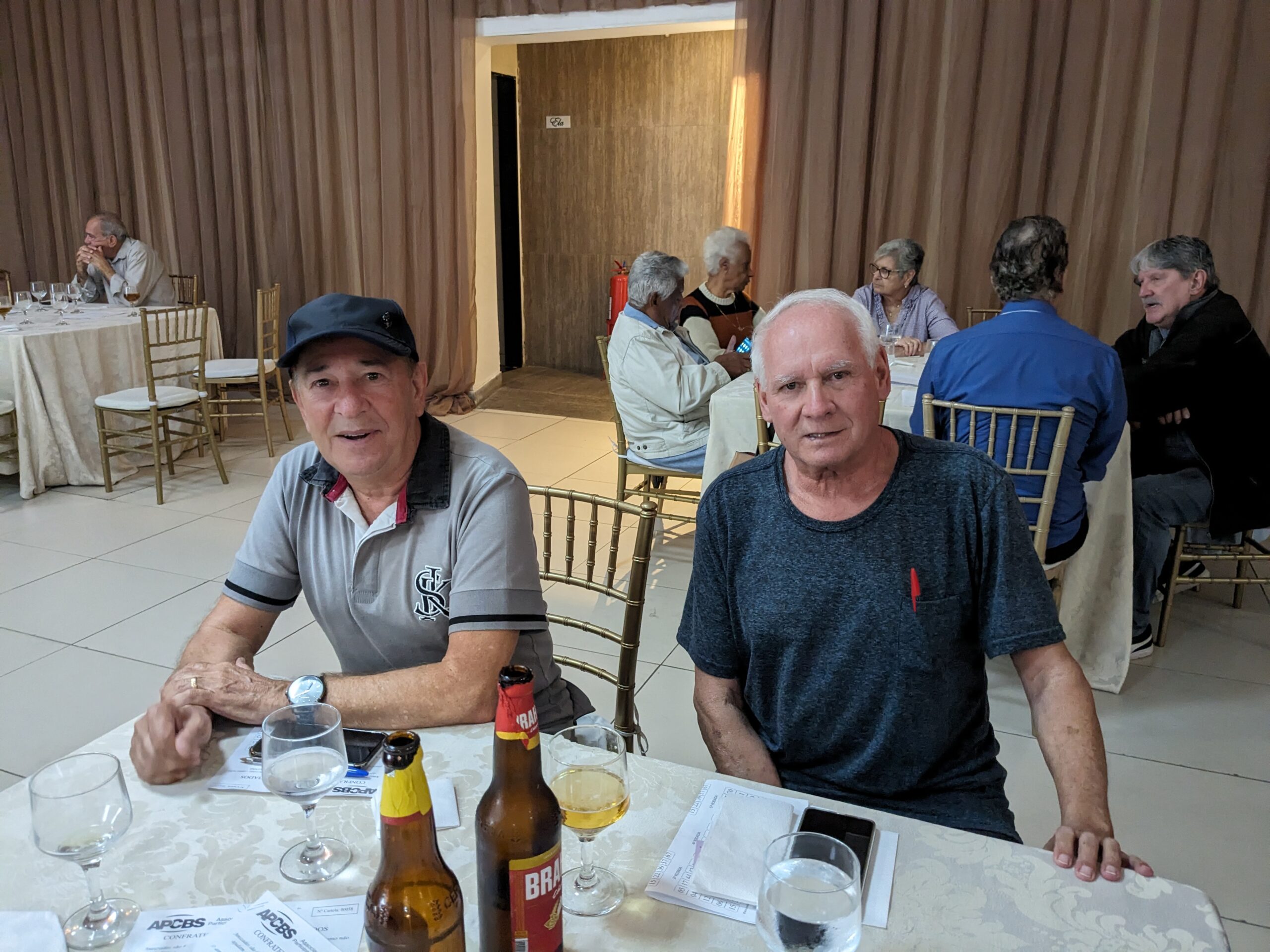 O almoço servido pelo Ricardo Buffet foi elogiado por todos que participaram do evento. Estava saboroso e todos podiam comer à vontade. O festival de prêmios foi um sucesso. Agradou a todos, principalmente às pensionistas e esposas presentes, pela qualidade dos prêmios e utilidade dos mesmos para o lar.