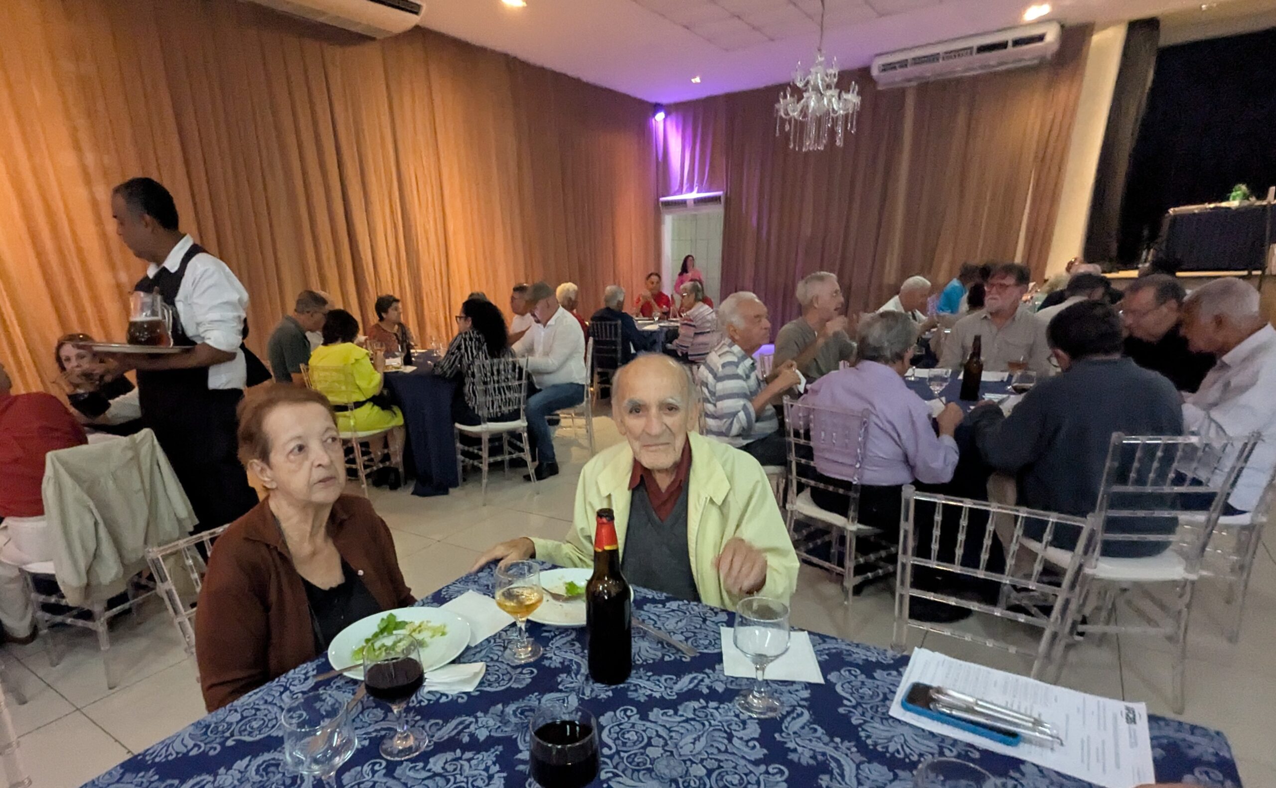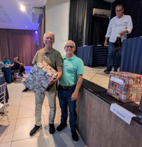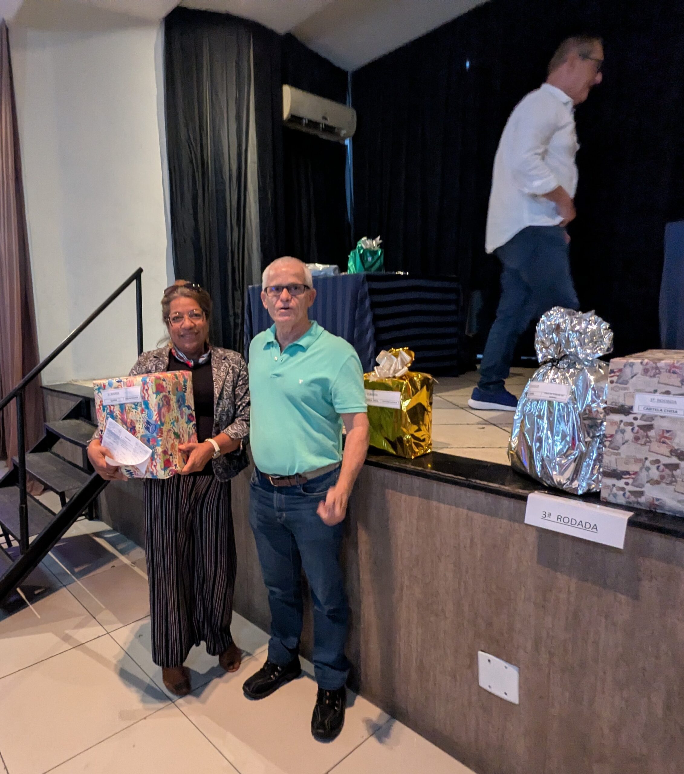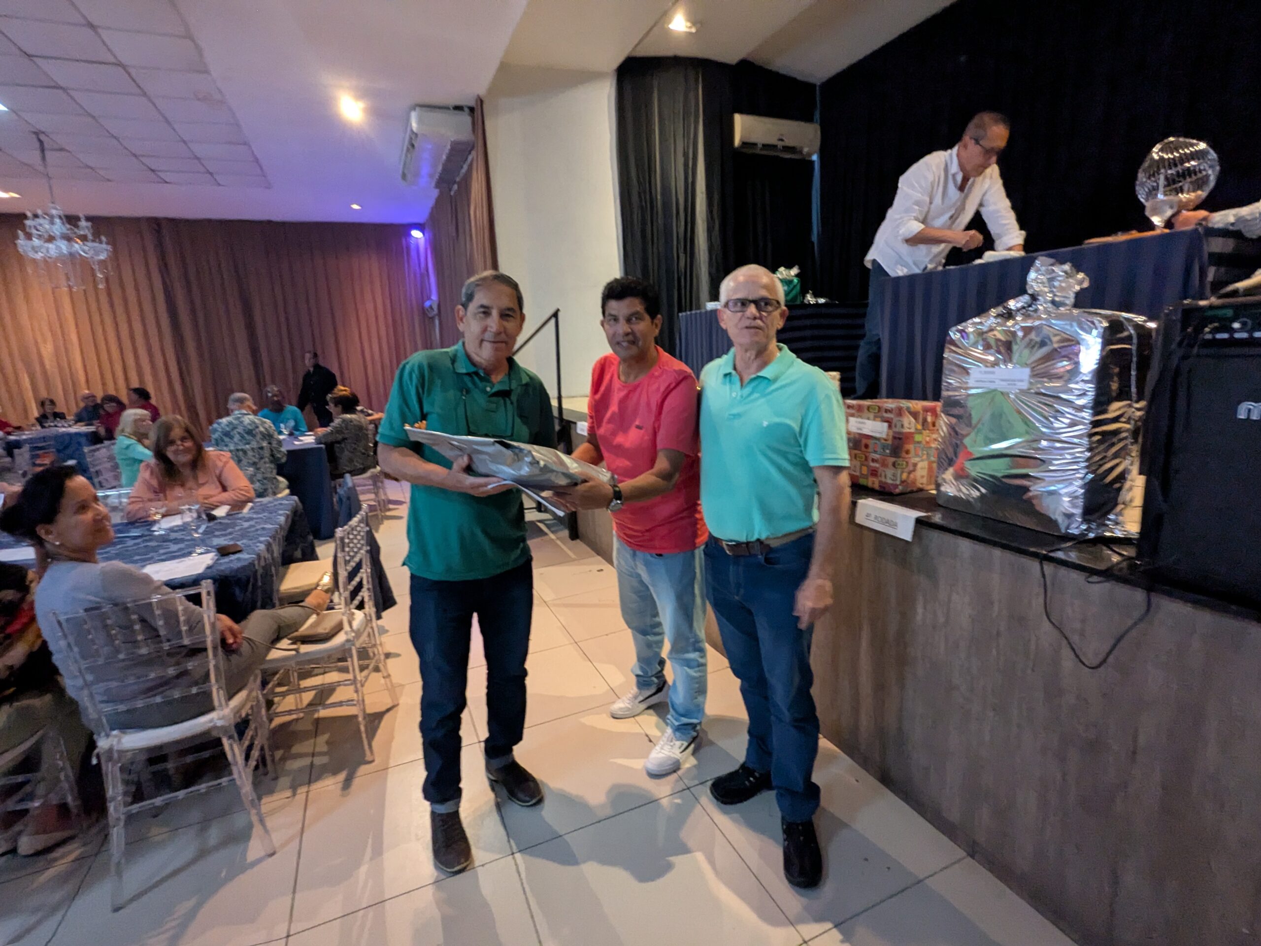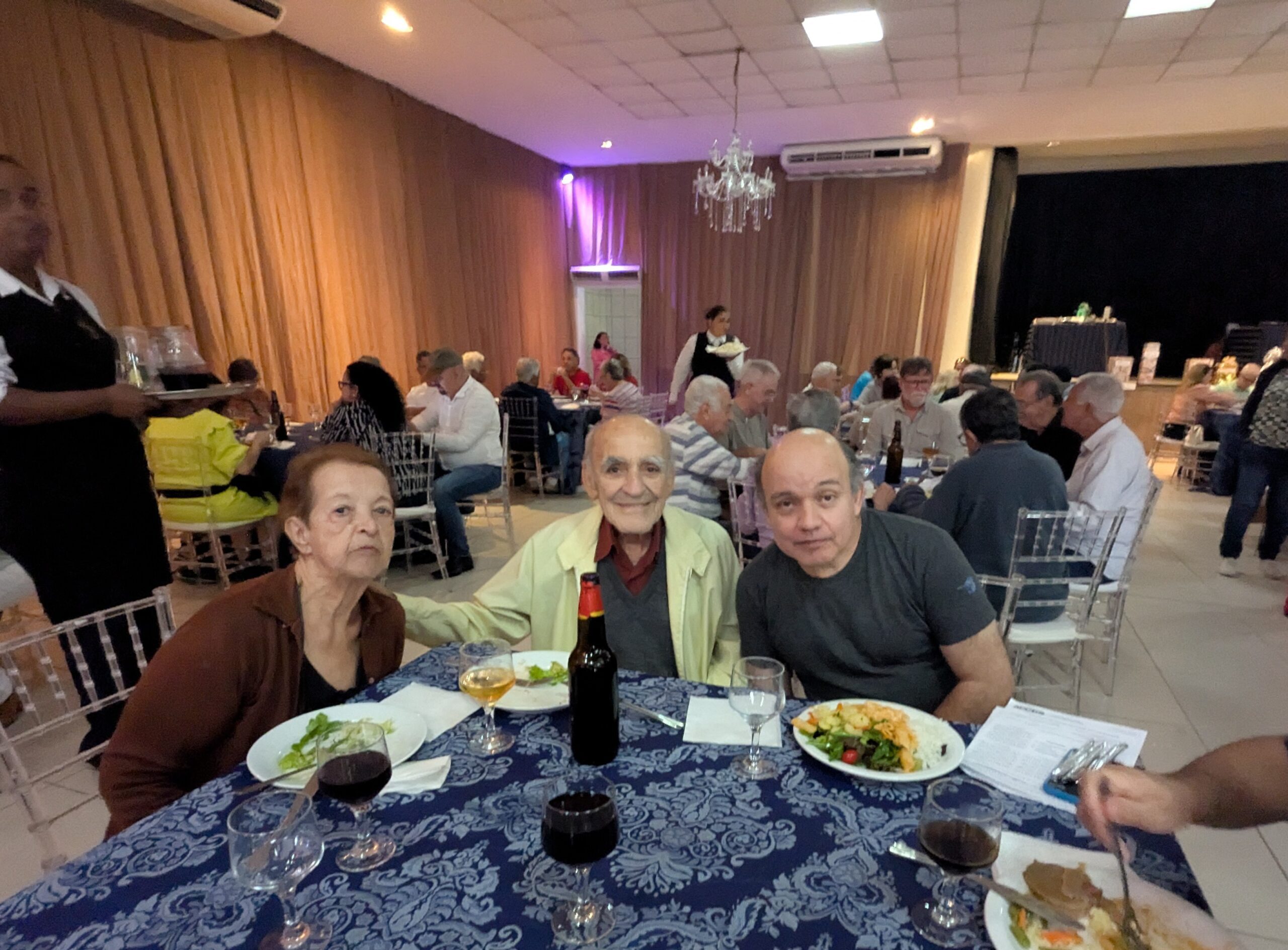 O almoço servido pelo Ricardo Buffet foi elogiado por todos que participaram do evento. Estava saboroso e todos podiam comer à vontade. O festival de prêmios foi um sucesso. Agradou a todos, principalmente às pensionistas e esposas presentes, pela qualidade dos prêmios e utilidade dos mesmos para o lar.