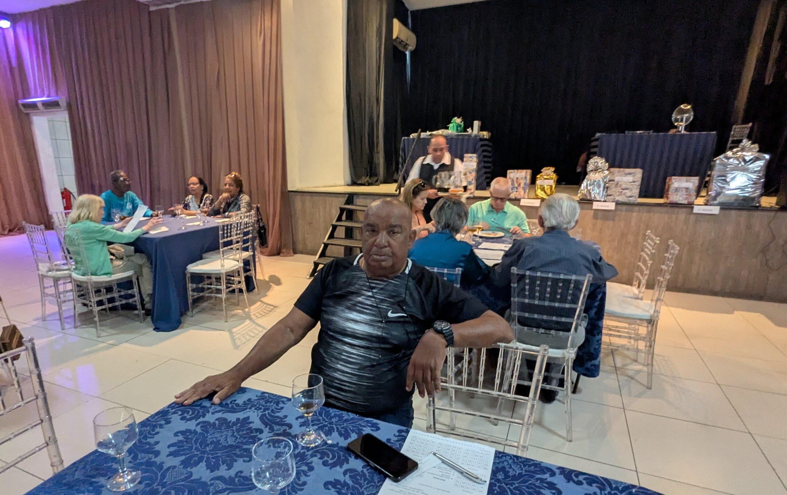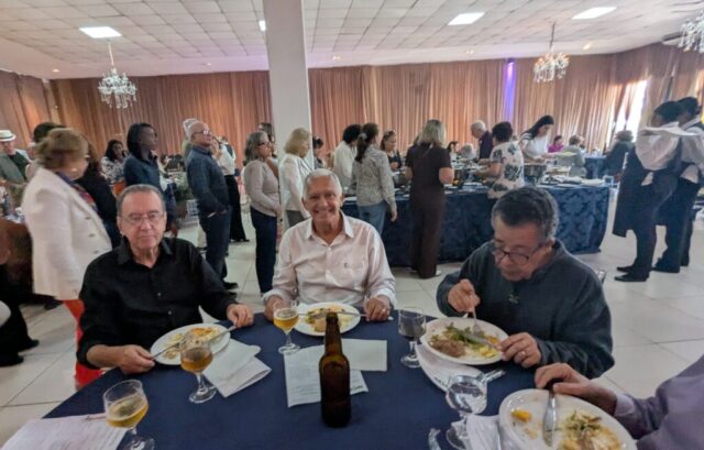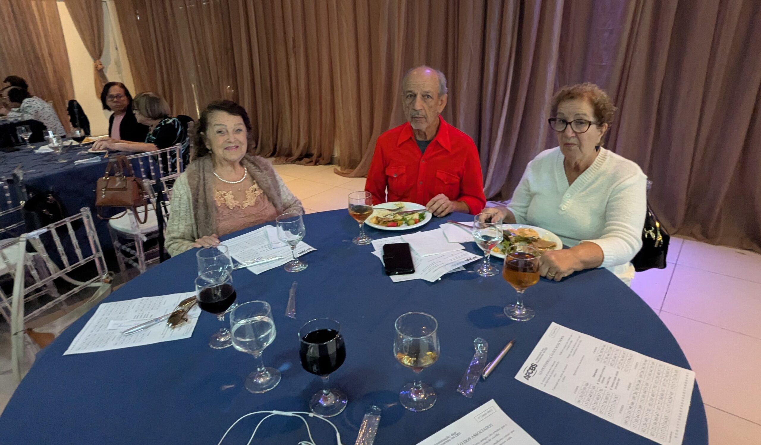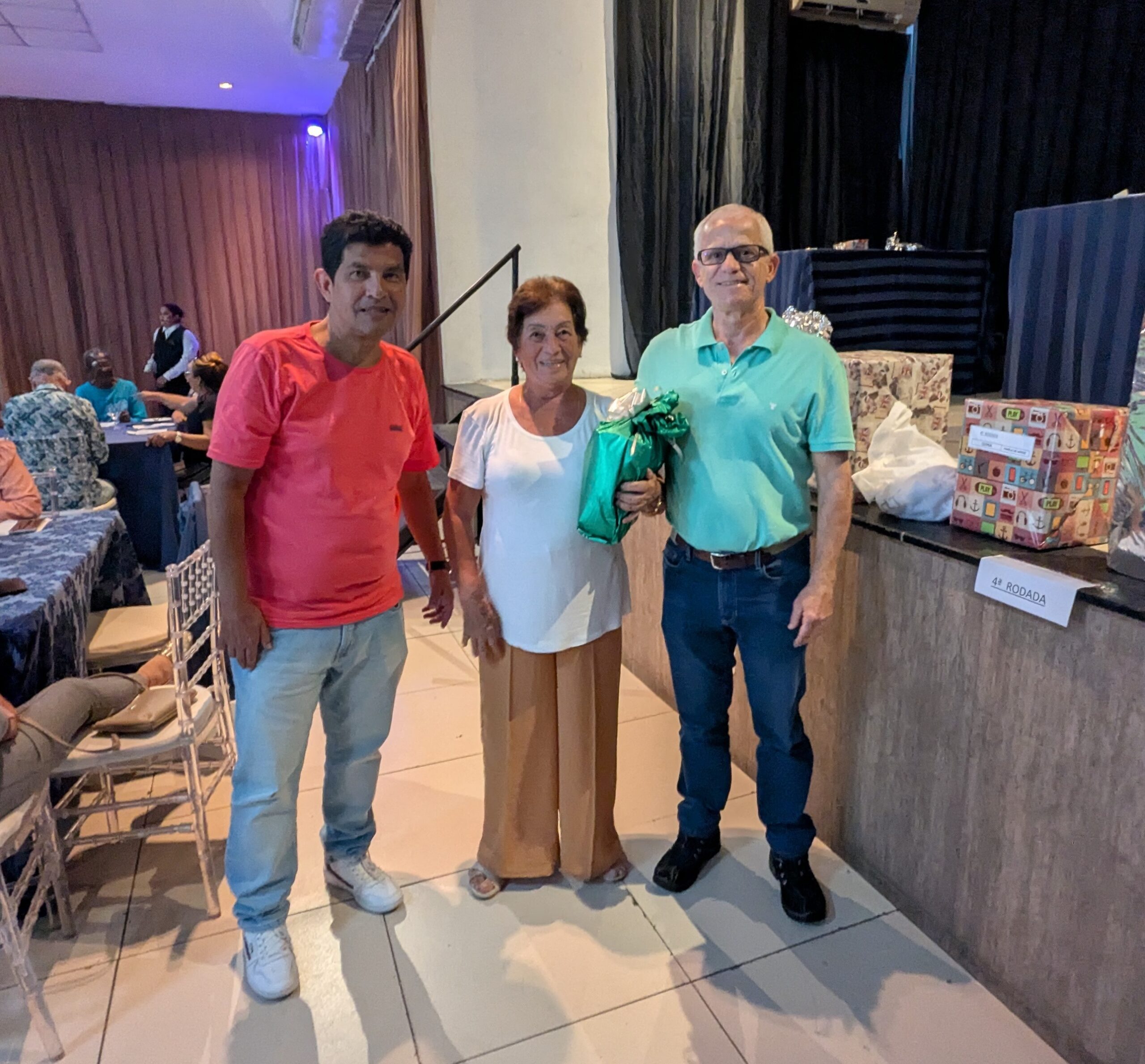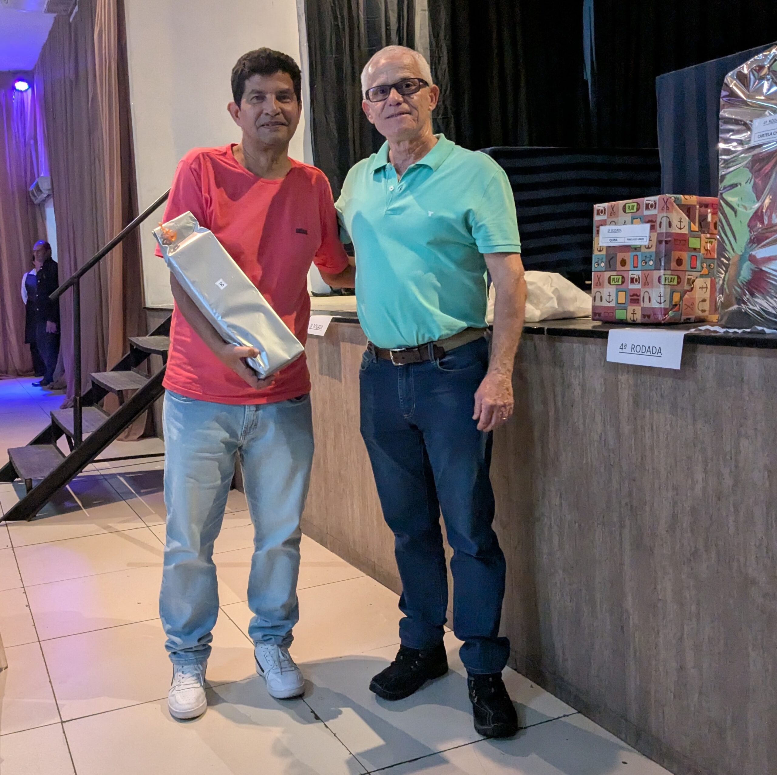 O almoço servido pelo Ricardo Buffet foi elogiado por todos que participaram do evento. Estava saboroso e todos podiam comer à vontade. O festival de prêmios foi um sucesso. Agradou a todos, principalmente às pensionistas e esposas presentes, pela qualidade dos prêmios e utilidade dos mesmos para o lar.