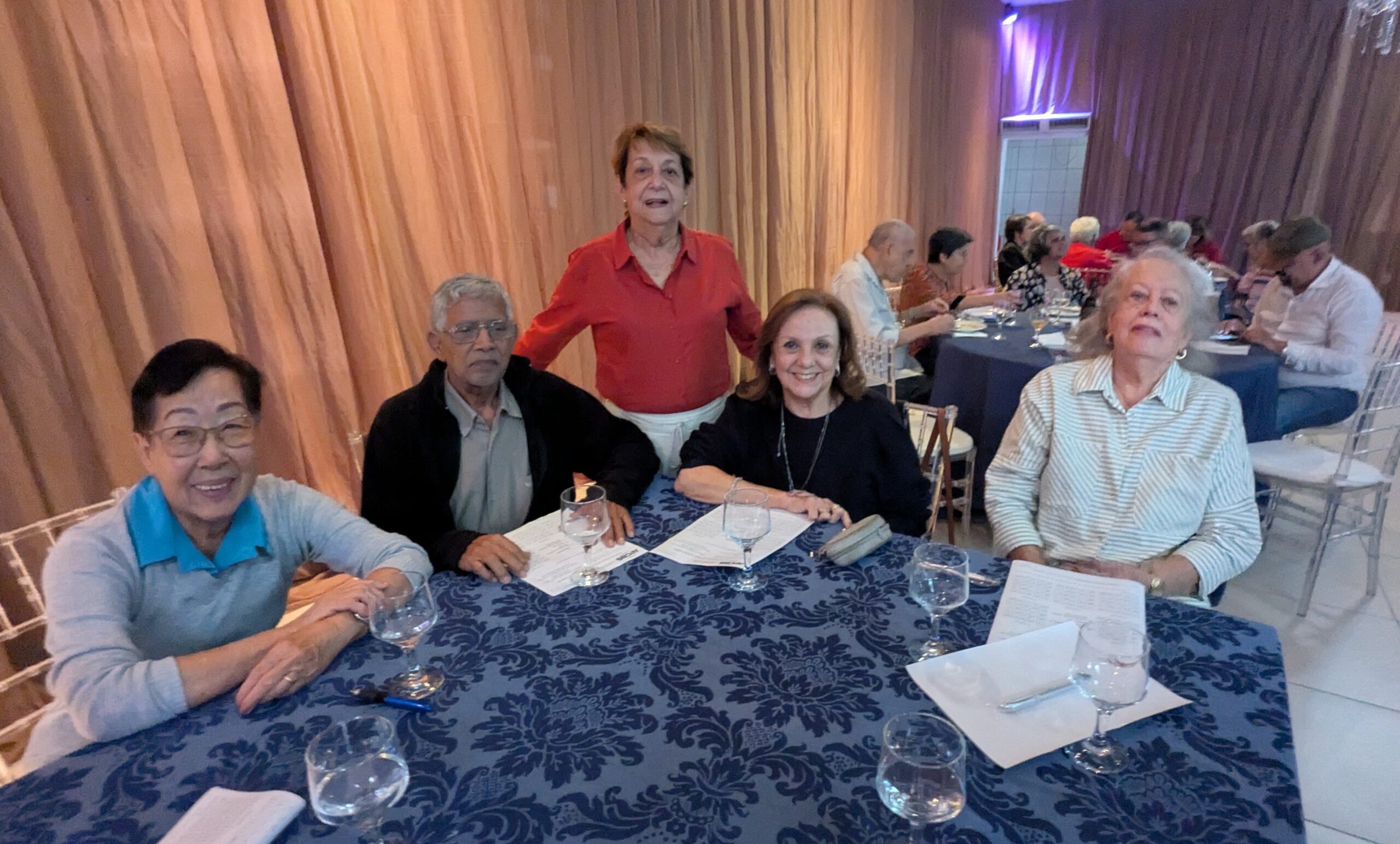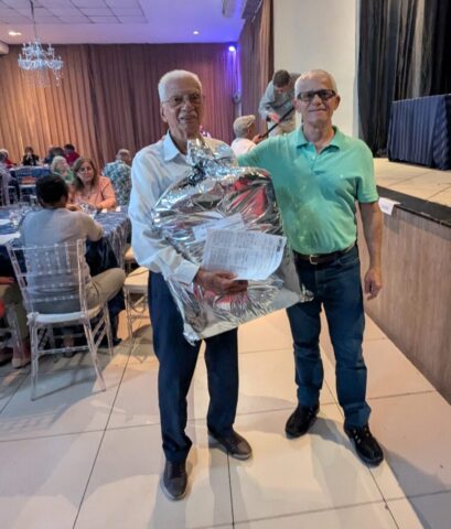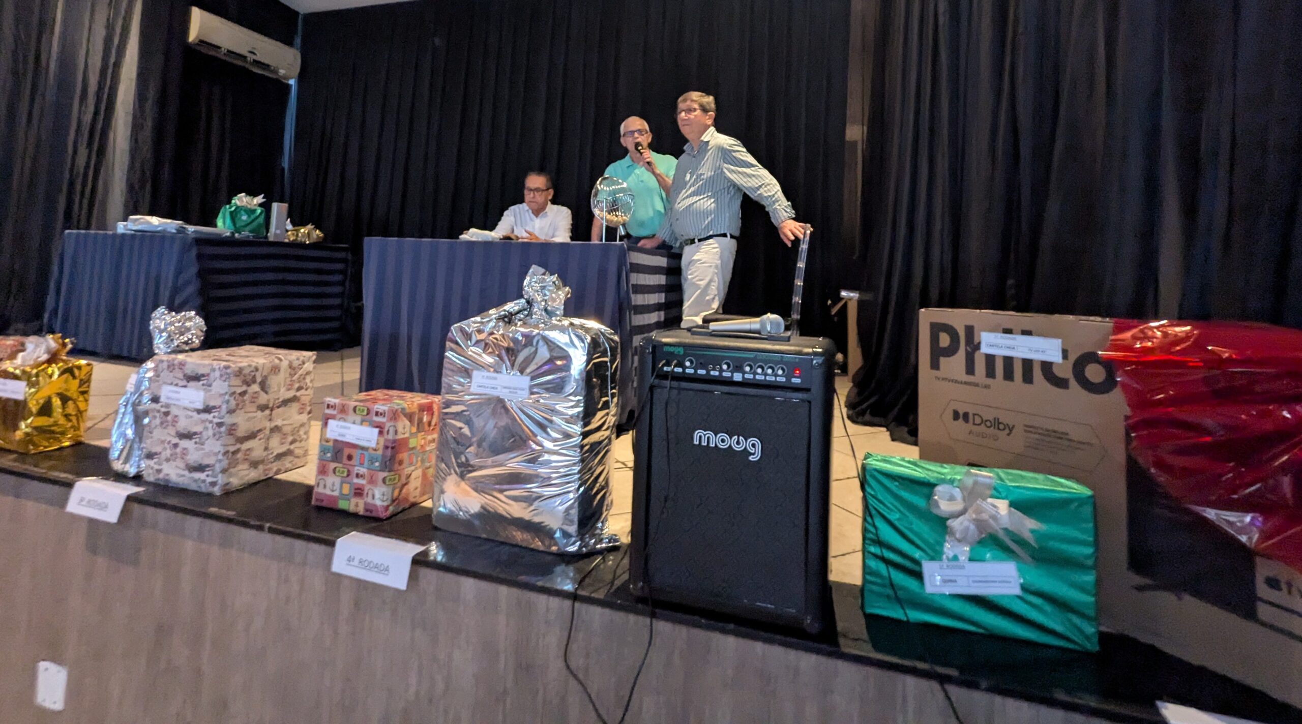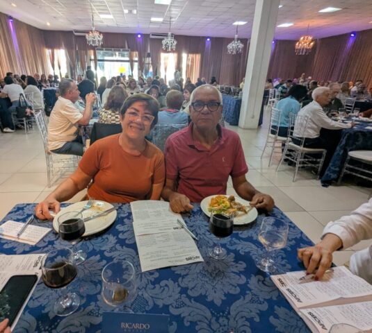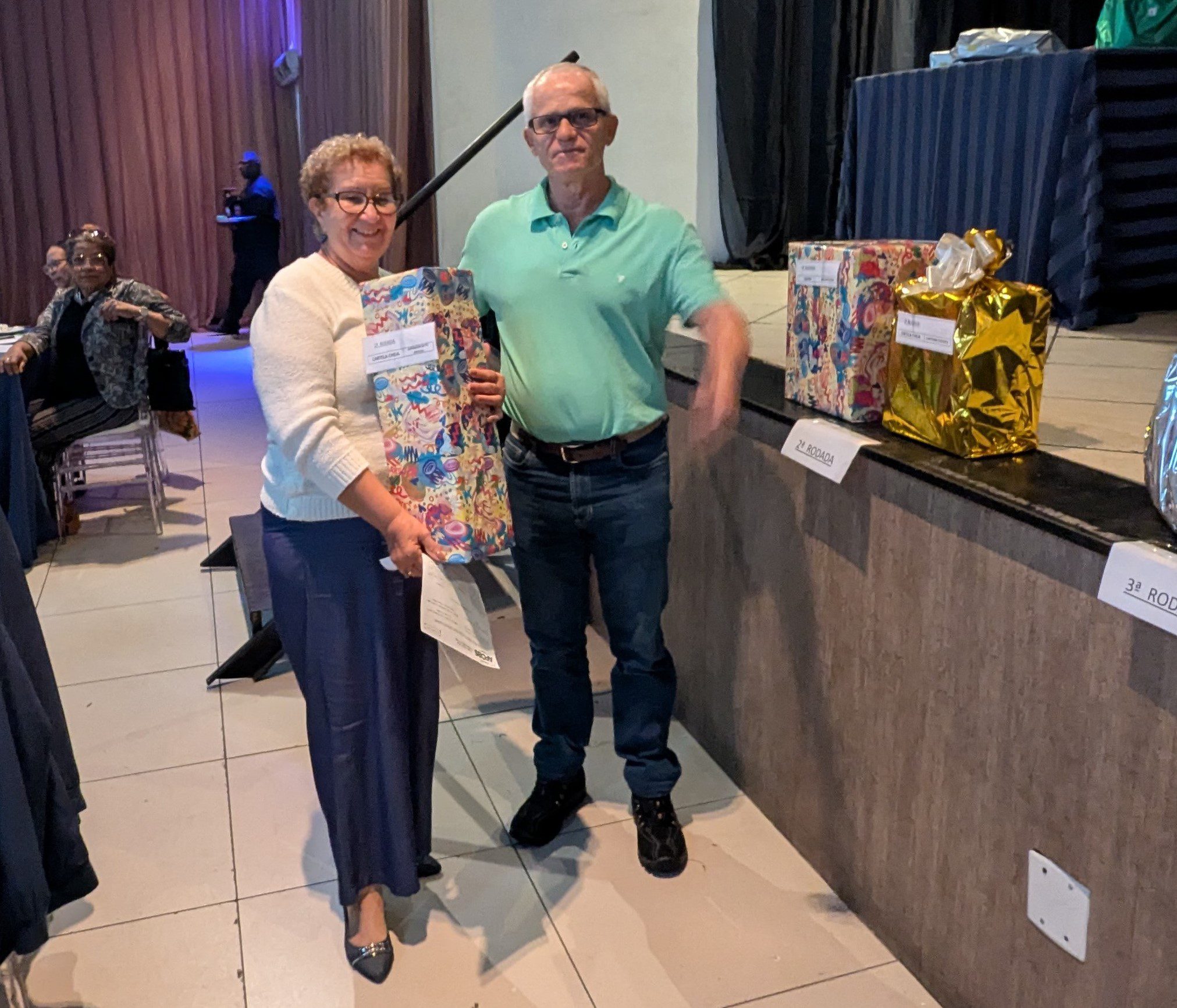 O almoço servido pelo Ricardo Buffet foi elogiado por todos que participaram do evento. Estava saboroso e todos podiam comer à vontade. O festival de prêmios foi um sucesso. Agradou a todos, principalmente às pensionistas e esposas presentes, pela qualidade dos prêmios e utilidade dos mesmos para o lar.