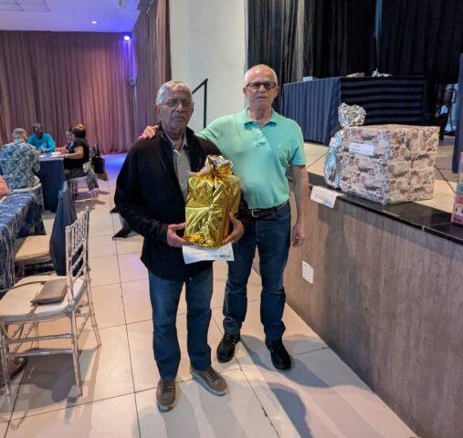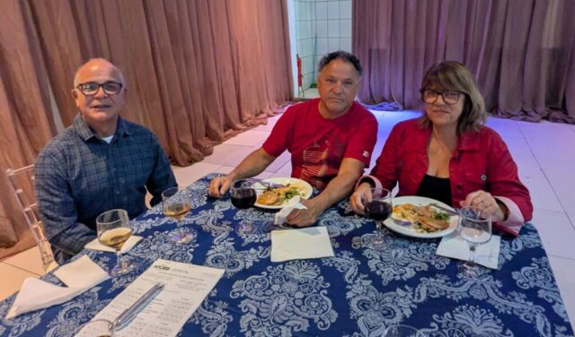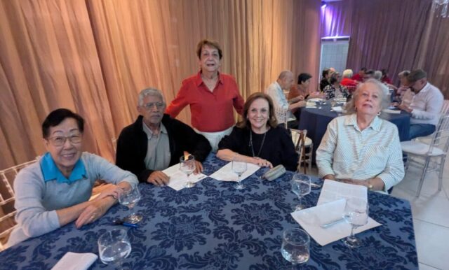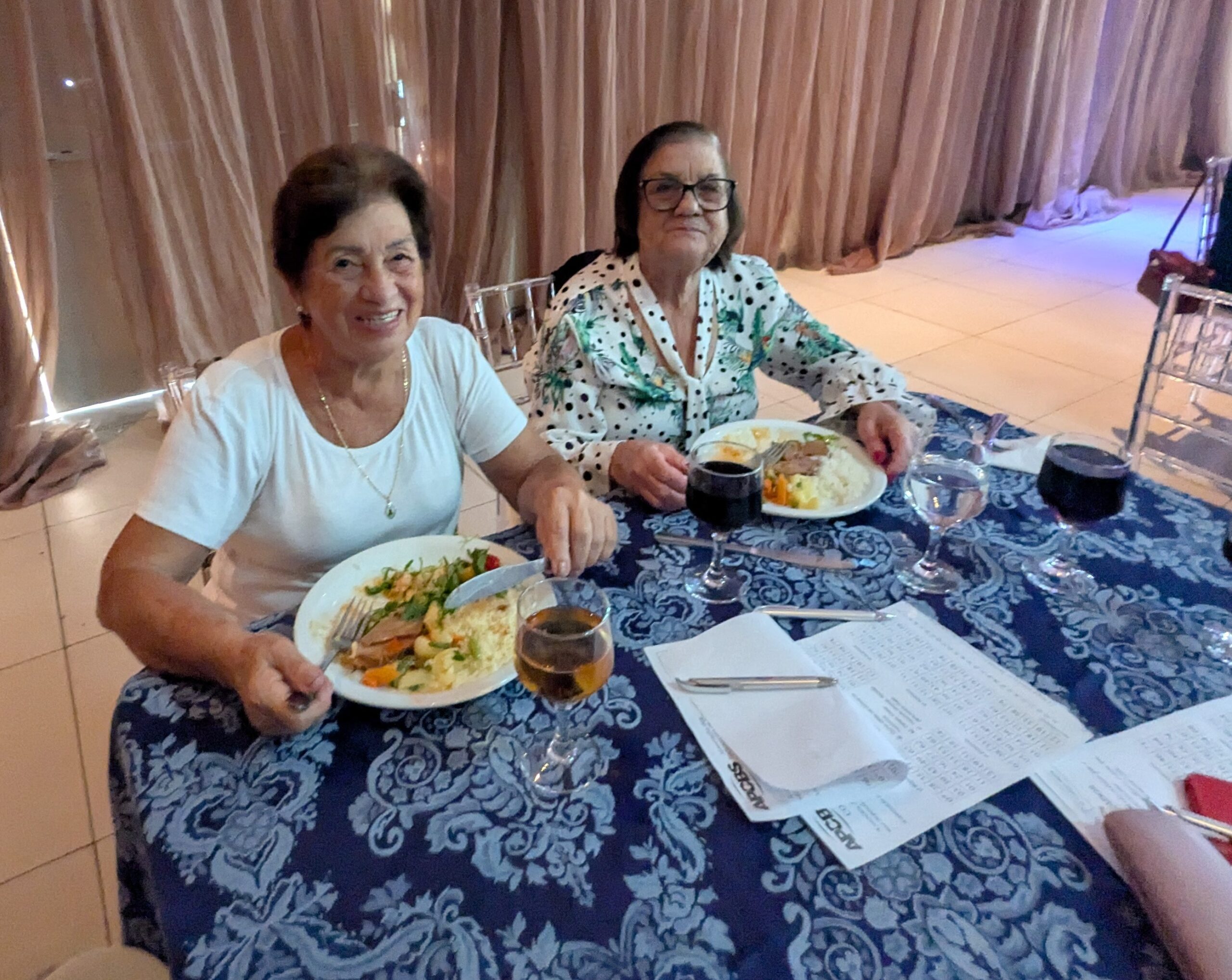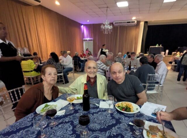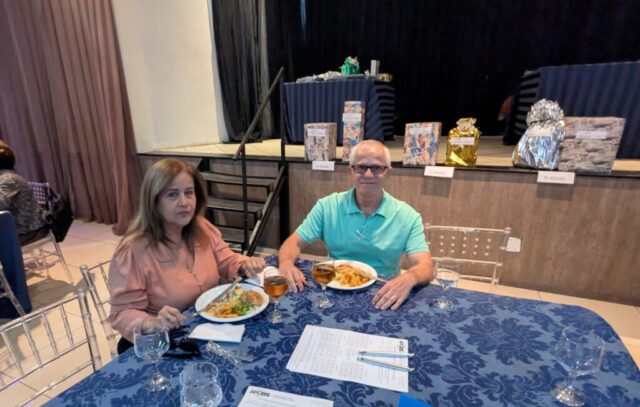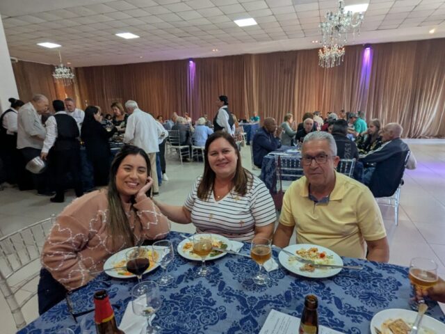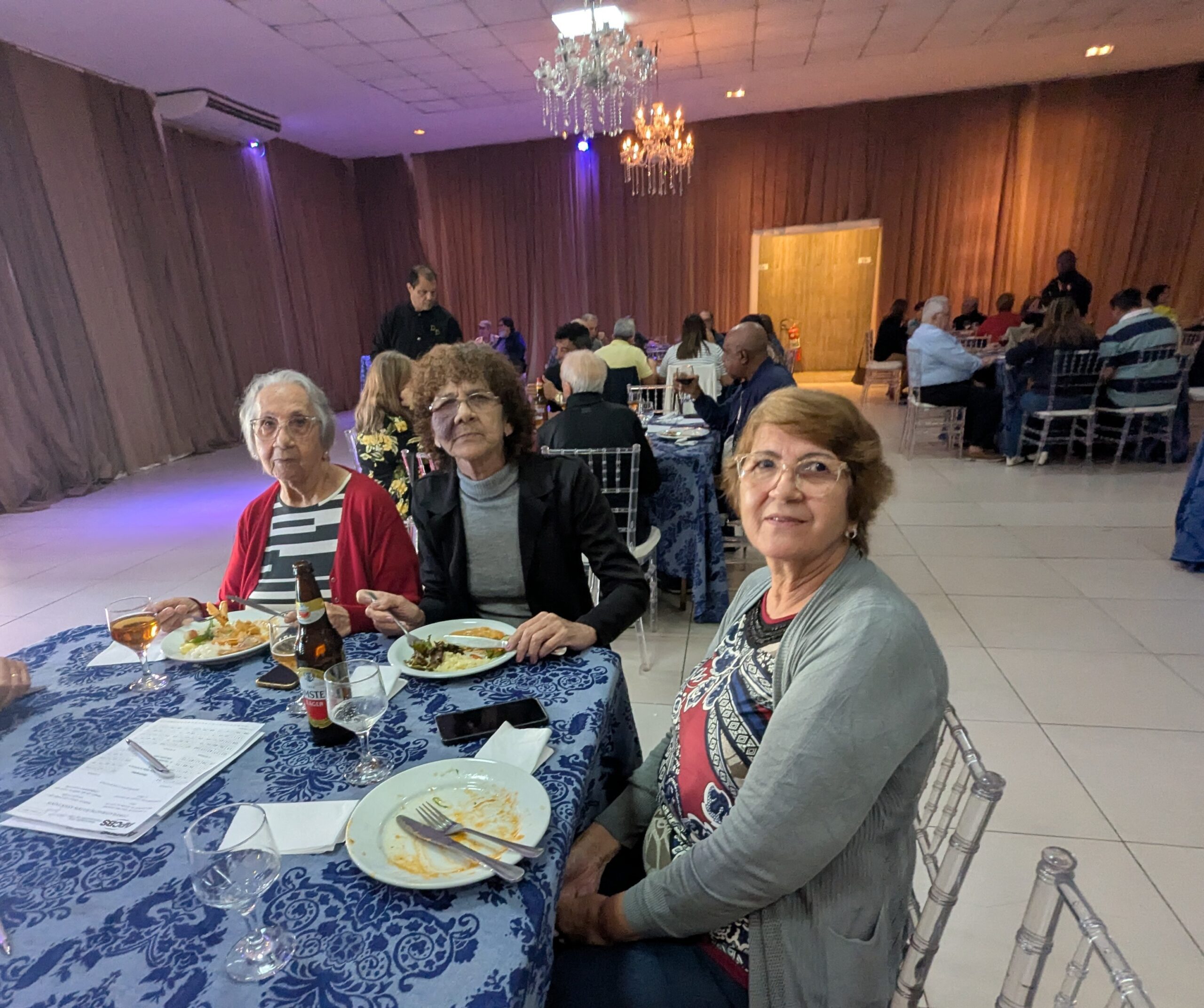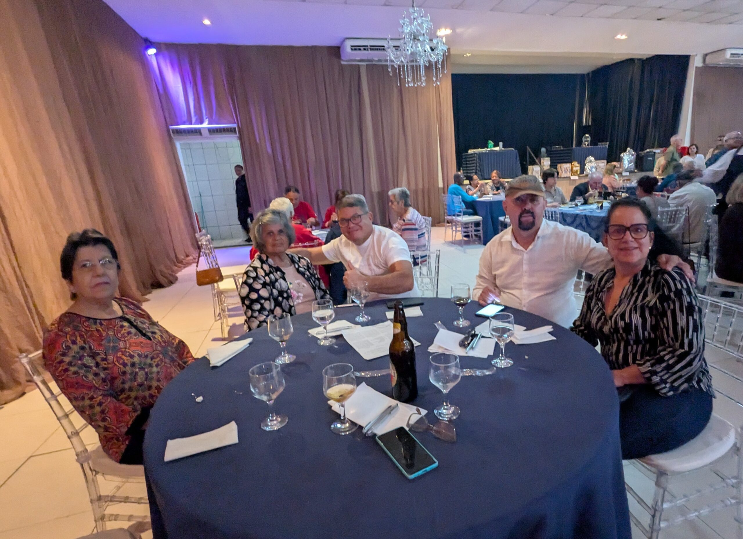 O almoço servido pelo Ricardo Buffet foi elogiado por todos que participaram do evento. Estava saboroso e todos podiam comer à vontade. O festival de prêmios foi um sucesso. Agradou a todos, principalmente às pensionistas e esposas presentes, pela qualidade dos prêmios e utilidade dos mesmos para o lar.